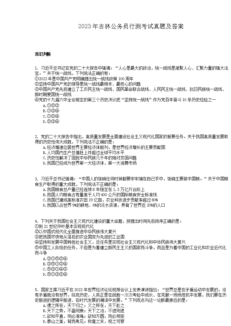 【文档名称】 2023年吉林公务员行测考试真题及答案(Word版).doc