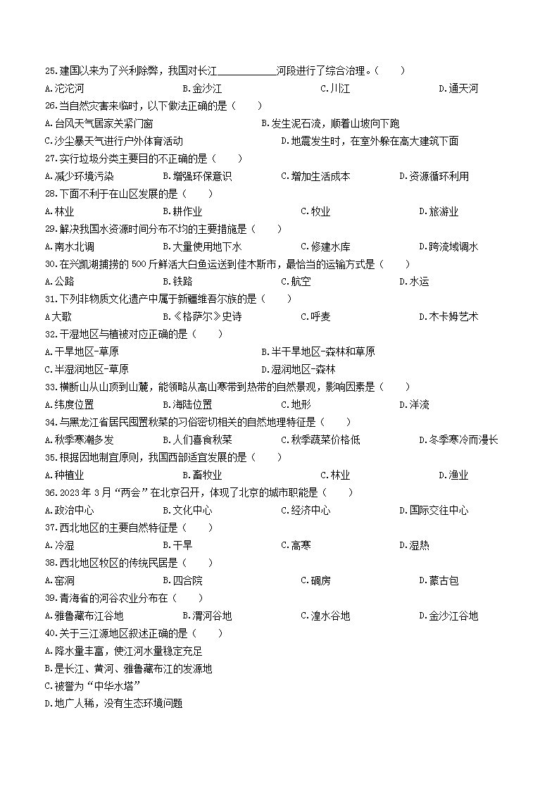 【文档预览】 无忧考网整理发布2023年黑龙江鸡西中考地理真题及答案(Word版),前五页预览如下:
