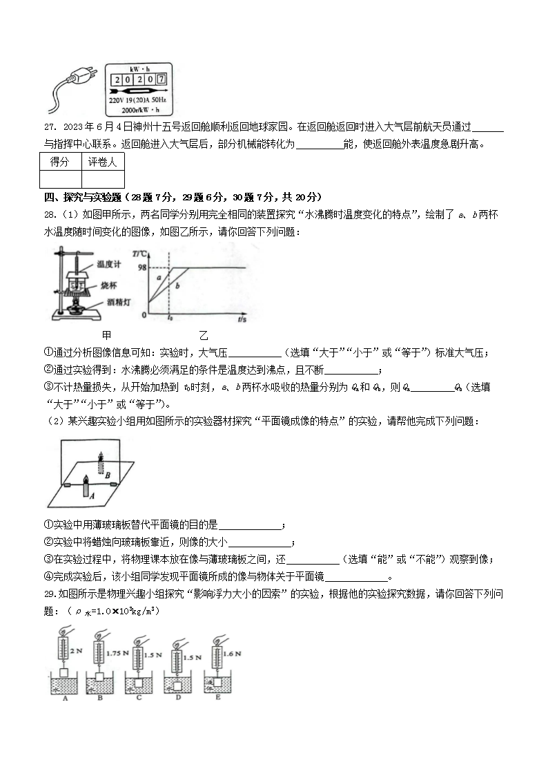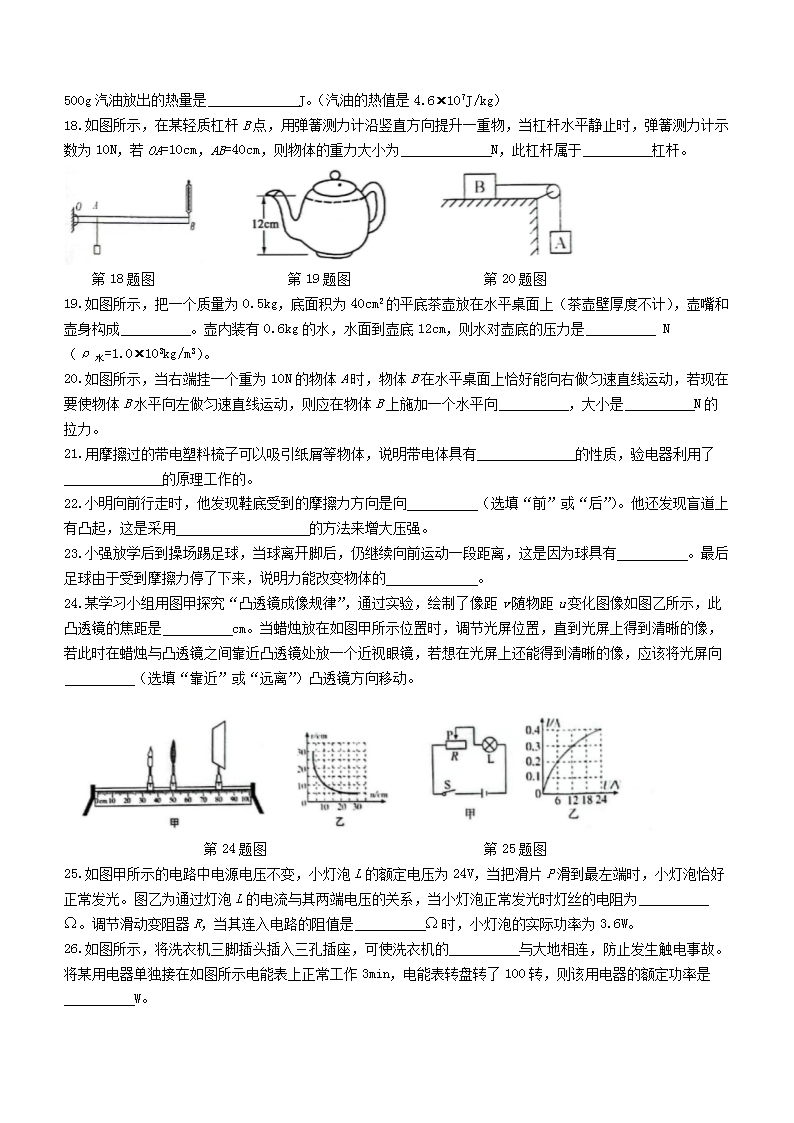 【文档预览】 无忧考网整理发布2023年黑龙江鹤岗中考物理真题及答案(Word版),前五页预览如下: