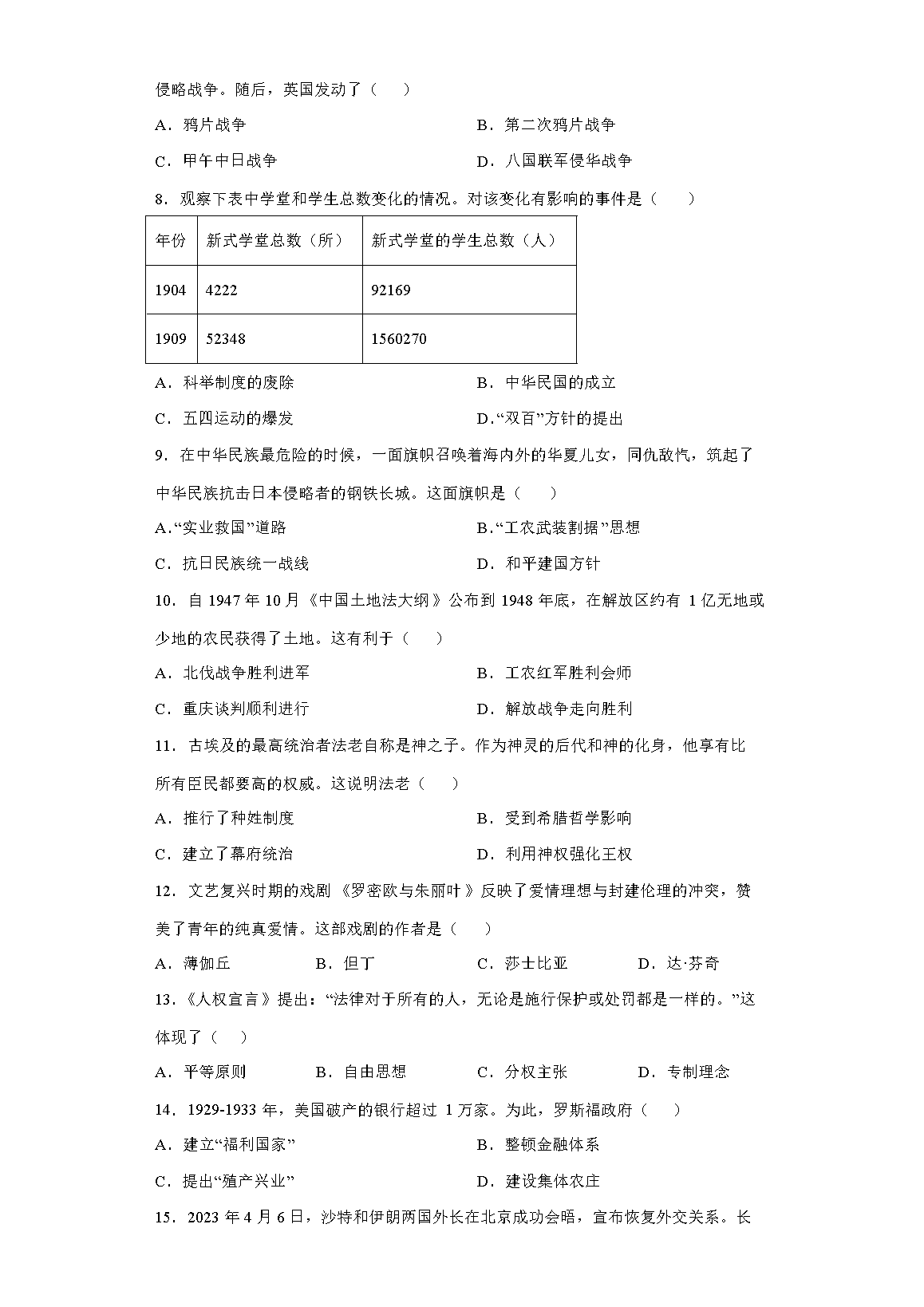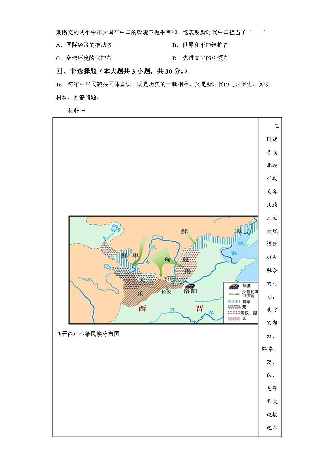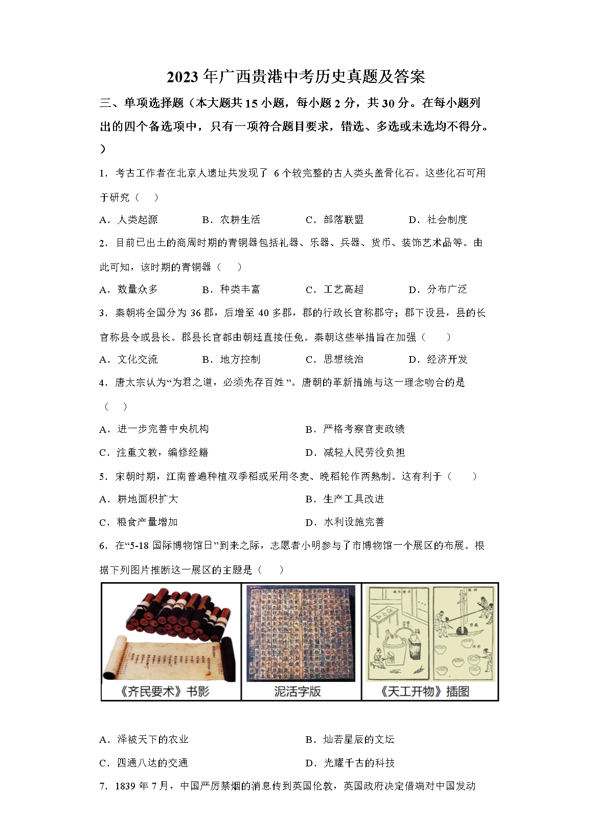 【文档名称】 2023年广西贵港中考历史真题及答案(Word版).doc