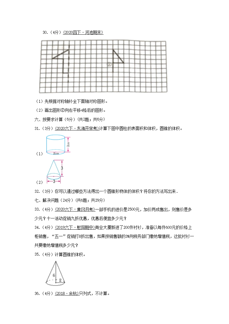 【文档预览】 无忧考网整理发布2021年青海省海西州六年级下册数学期中考试试卷及答案(Word版),前五页预览如下: