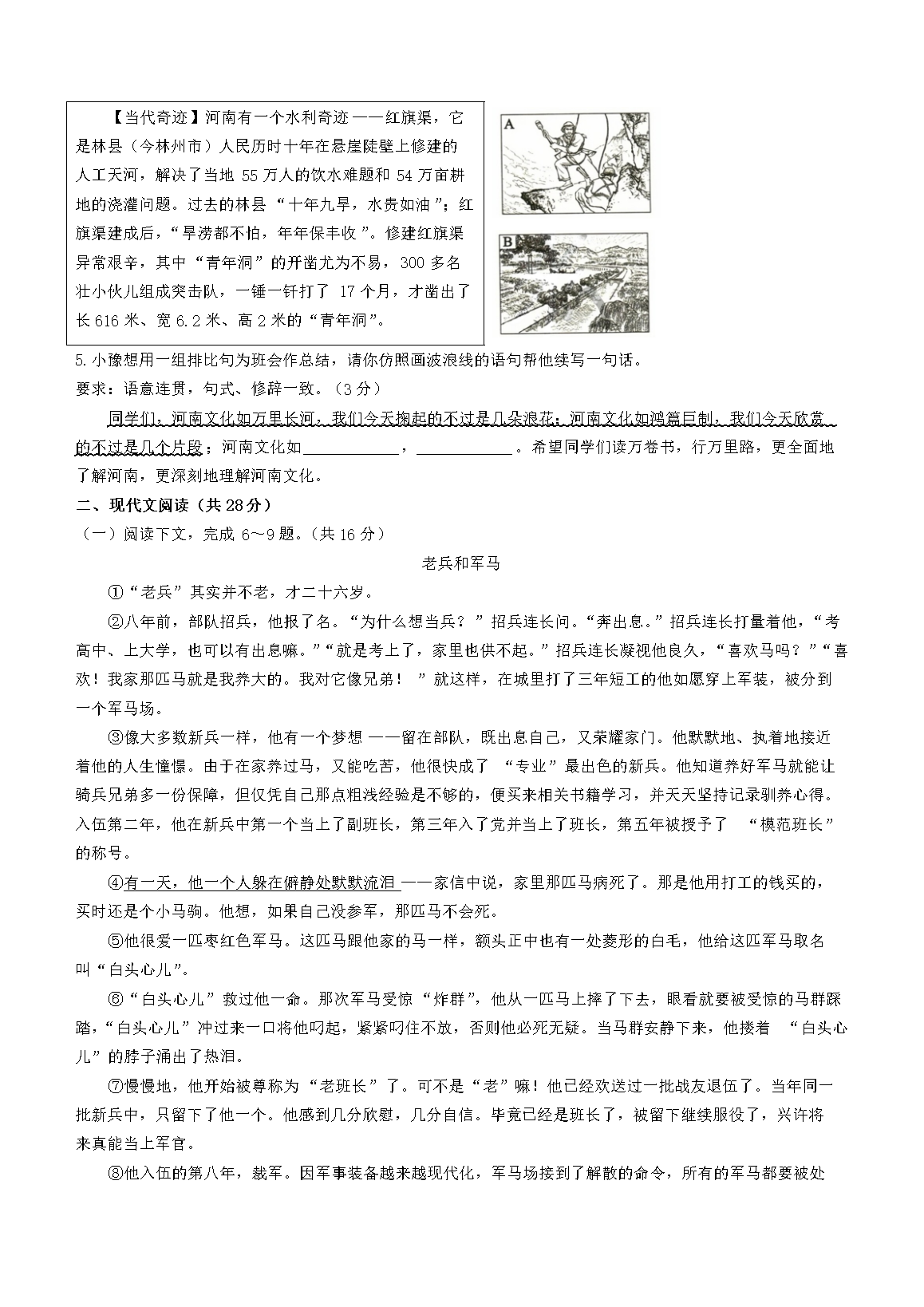 【文档名称】 2023年河南鹤壁中考语文真题及答案(Word版).doc