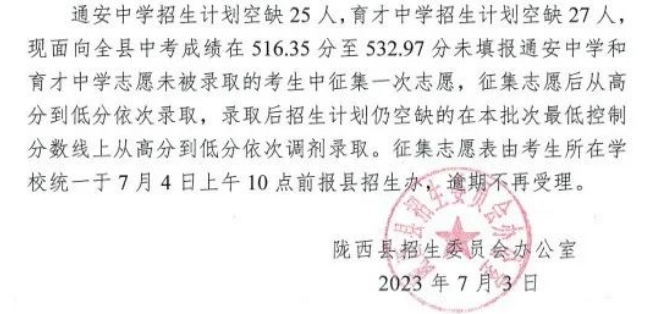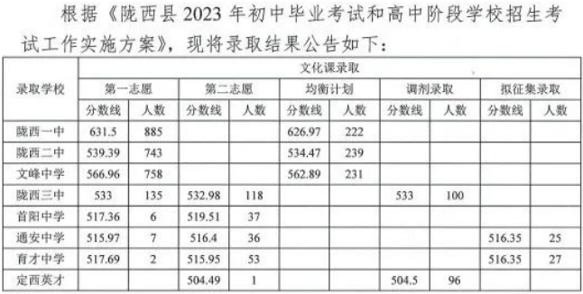 甘肃定西陇西县2023年中考招生录取结果公布