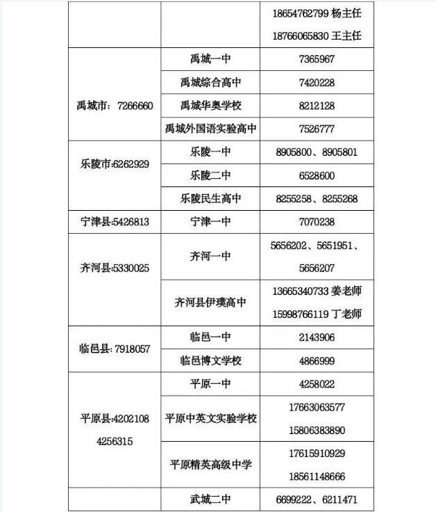 五、有关招生政策问题,各位考生及家长可以向各县(市、区)教体局进行咨询(电话已在查分平台界面公布),或及时关注“德州教育体育”公众号信息发布,不要盲目听信某些学校或机构的承诺和保证,以免影响志愿填报,影响报名和录取。