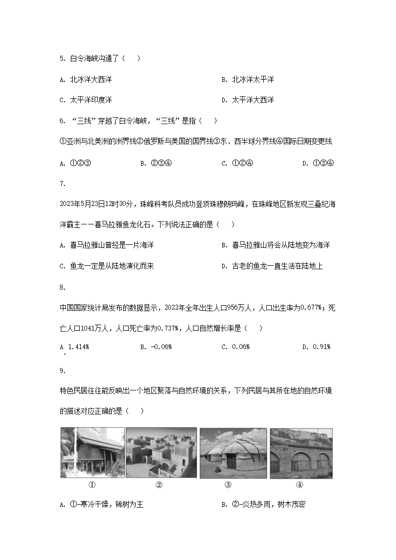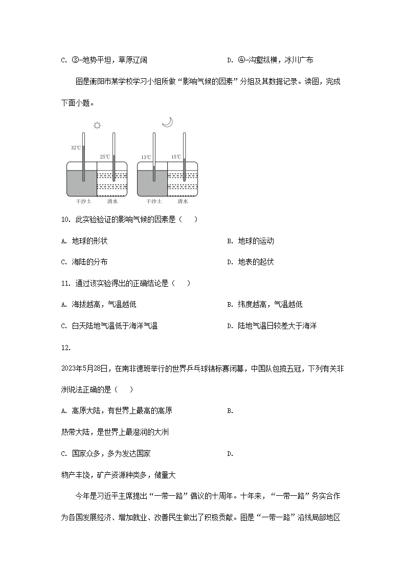 【文档名称】 2023年湖南衡阳中考地理真题及答案(Word版).doc
