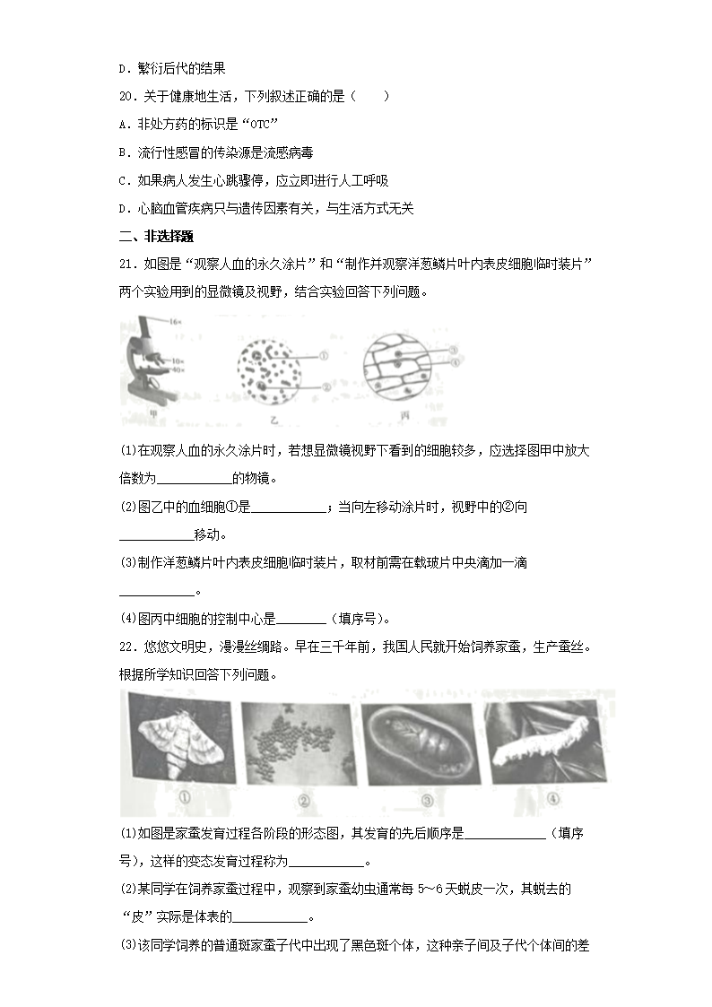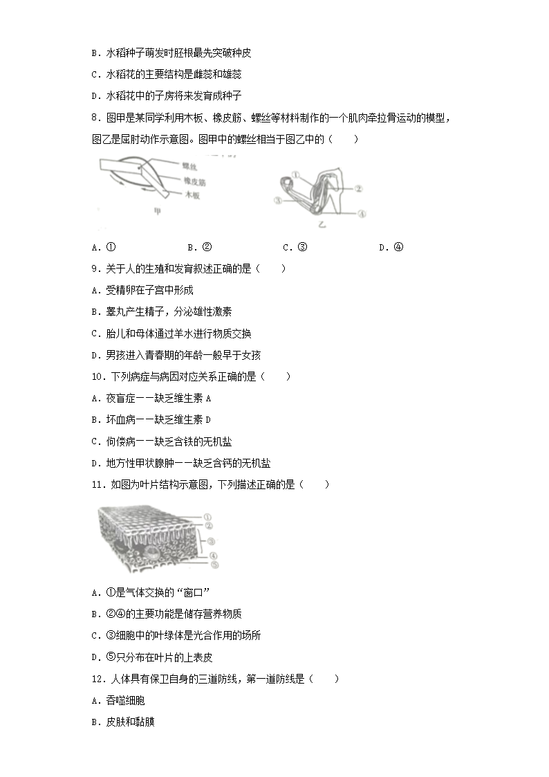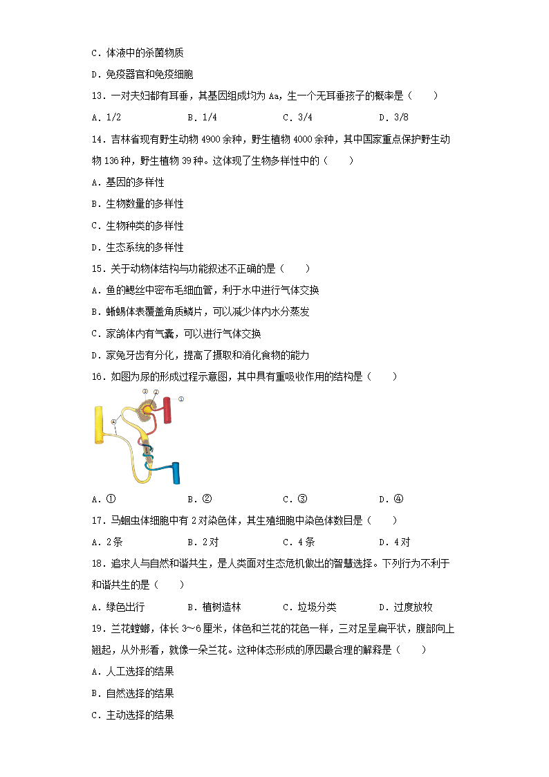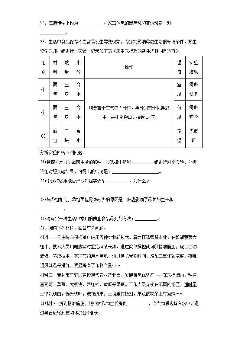 【文档名称】 2023年吉林中考生物真题及答案(Word版).doc