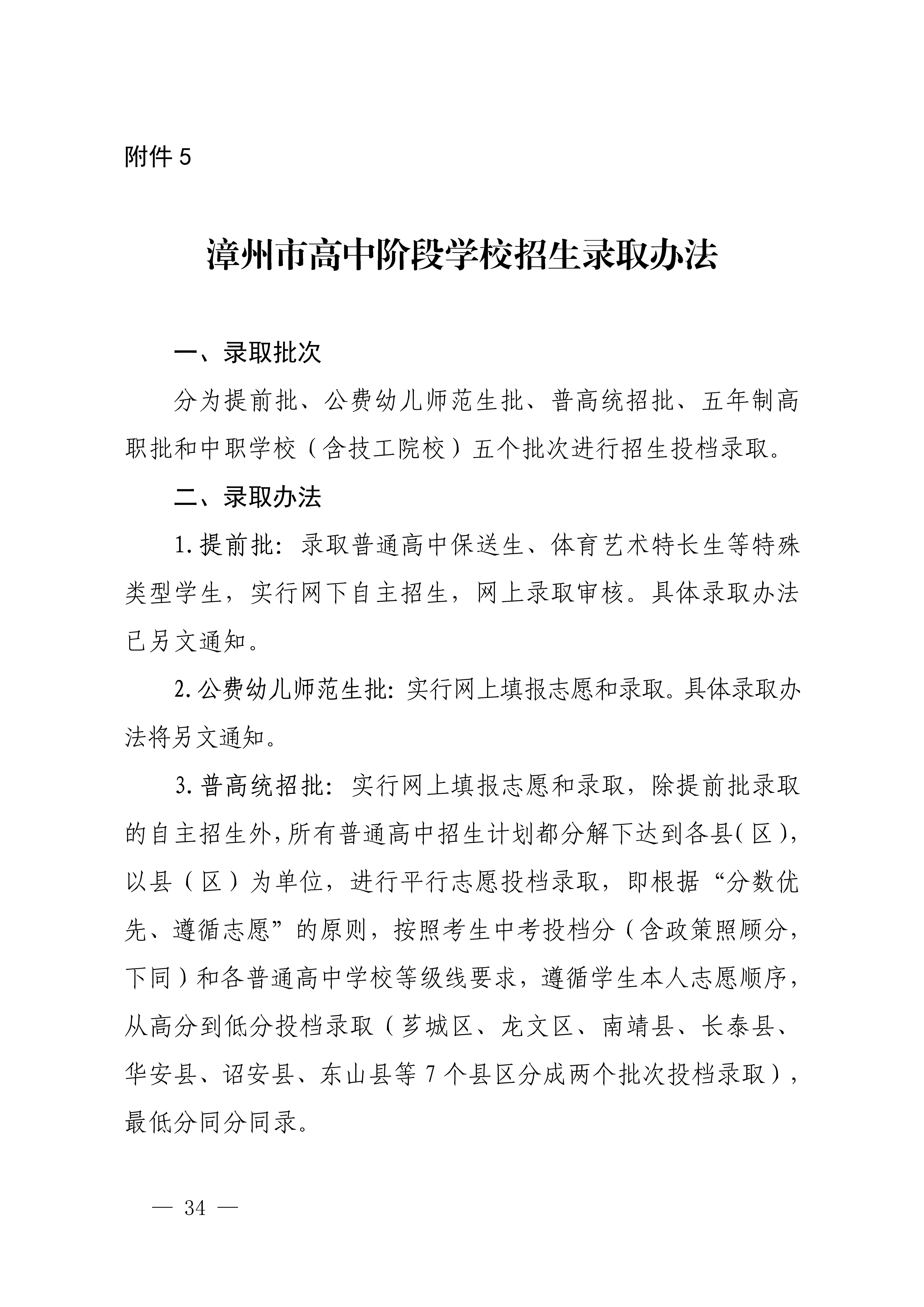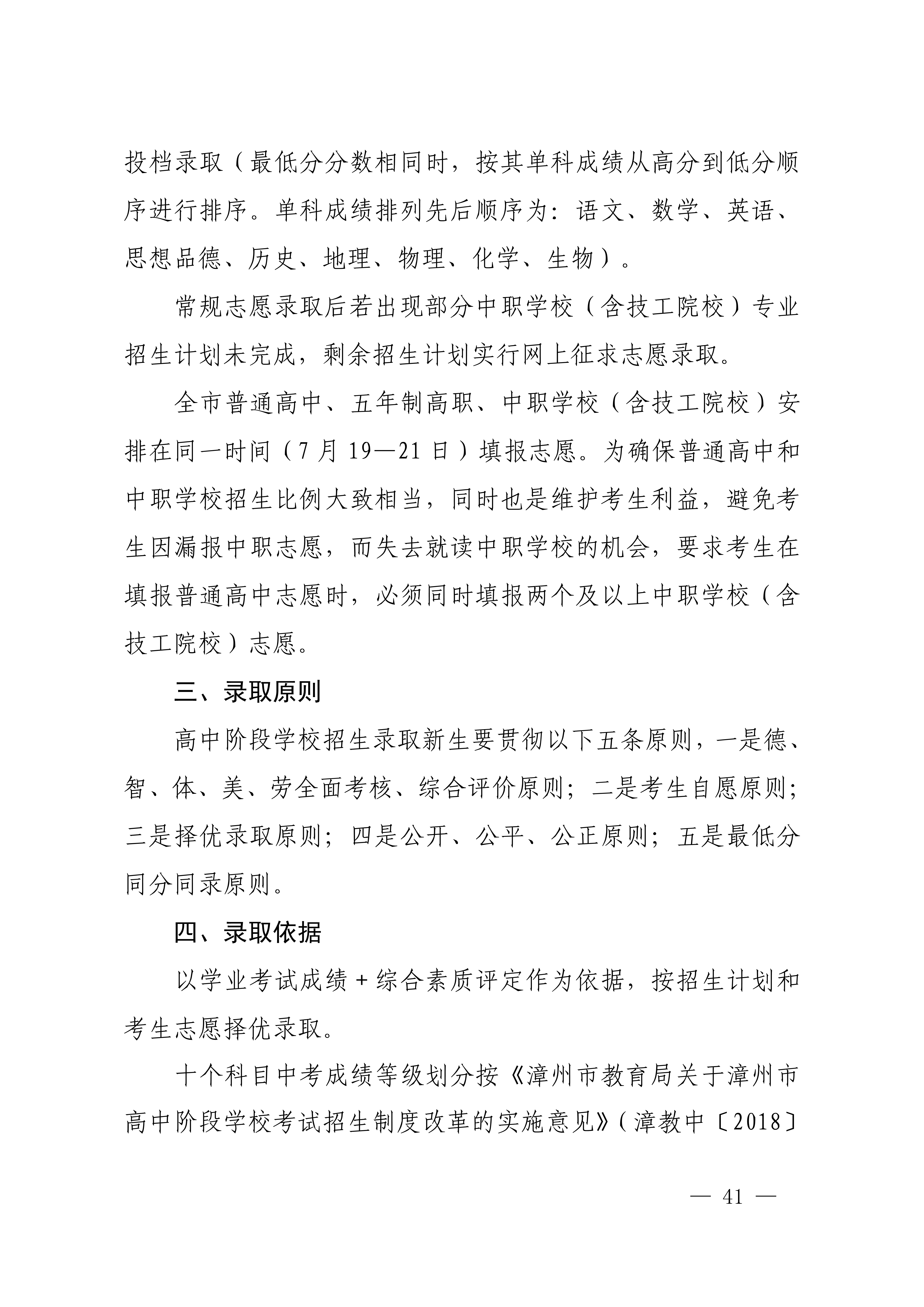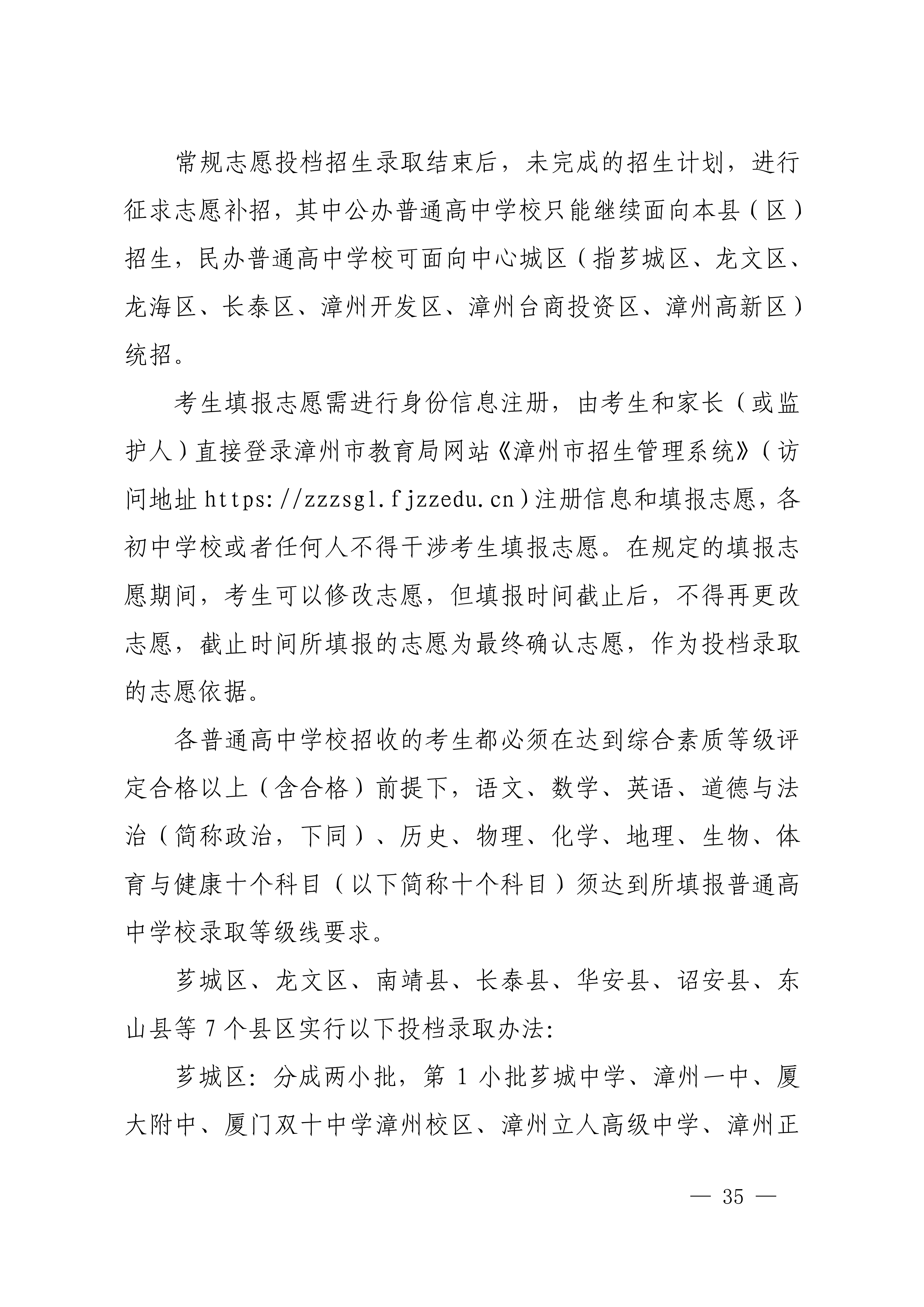 福建漳州2023年高中阶段学校招生录取工作的通知