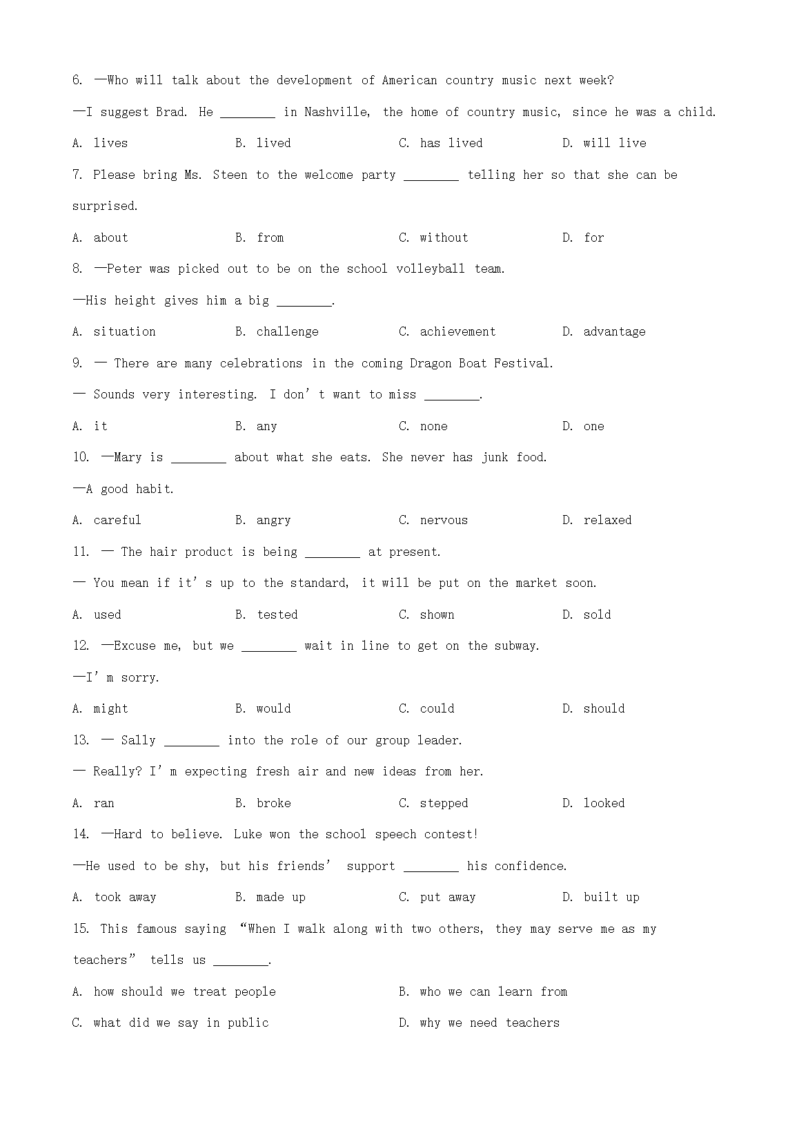 【文档名称】 2023年湖北武汉中考英语真题及答案(Word版).doc