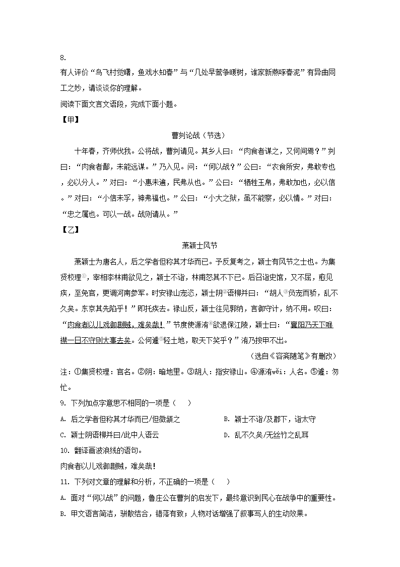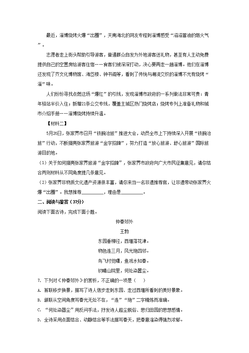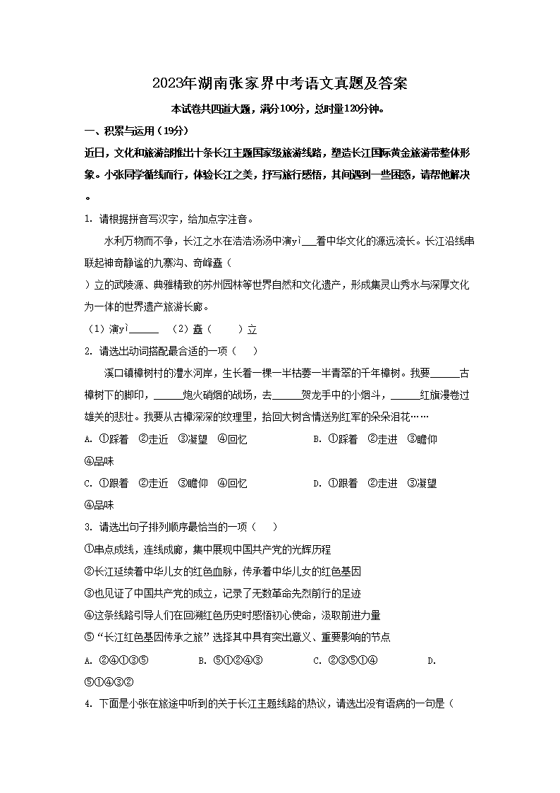 【文档名称】 2023年湖南张家界中考语文真题及答案(Word版).doc