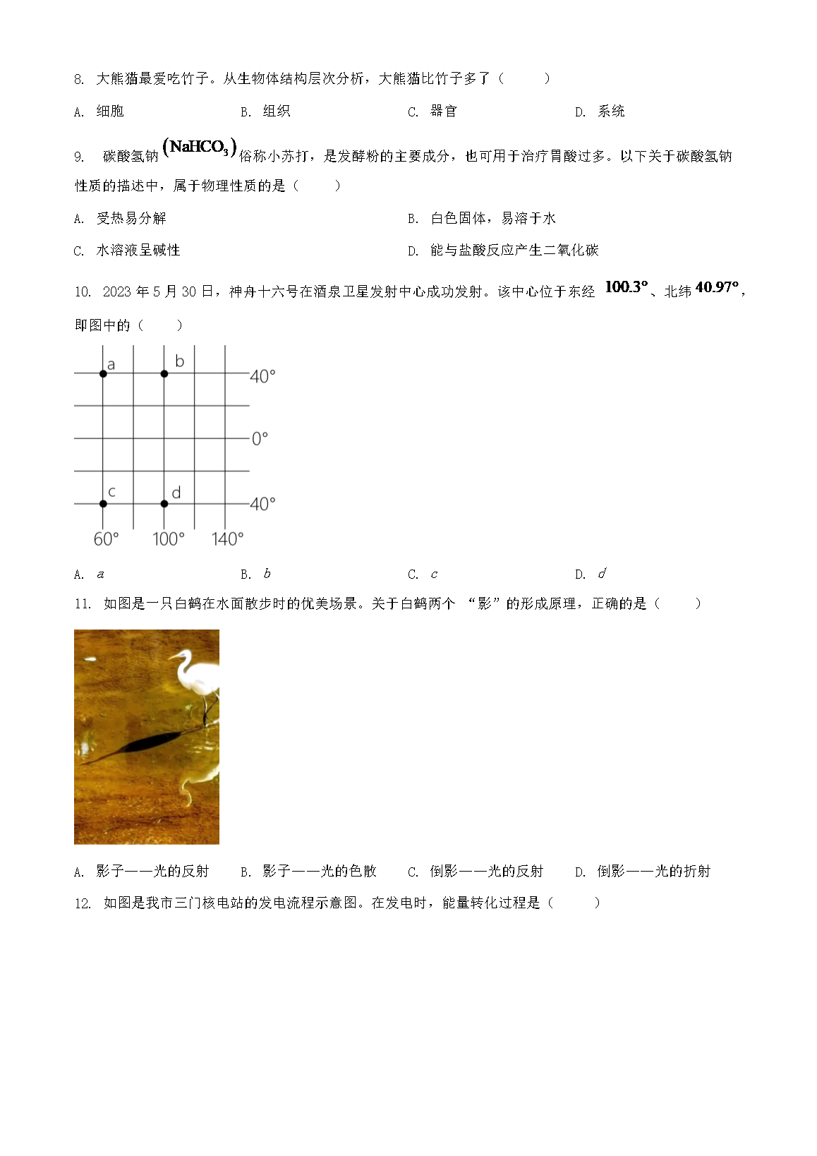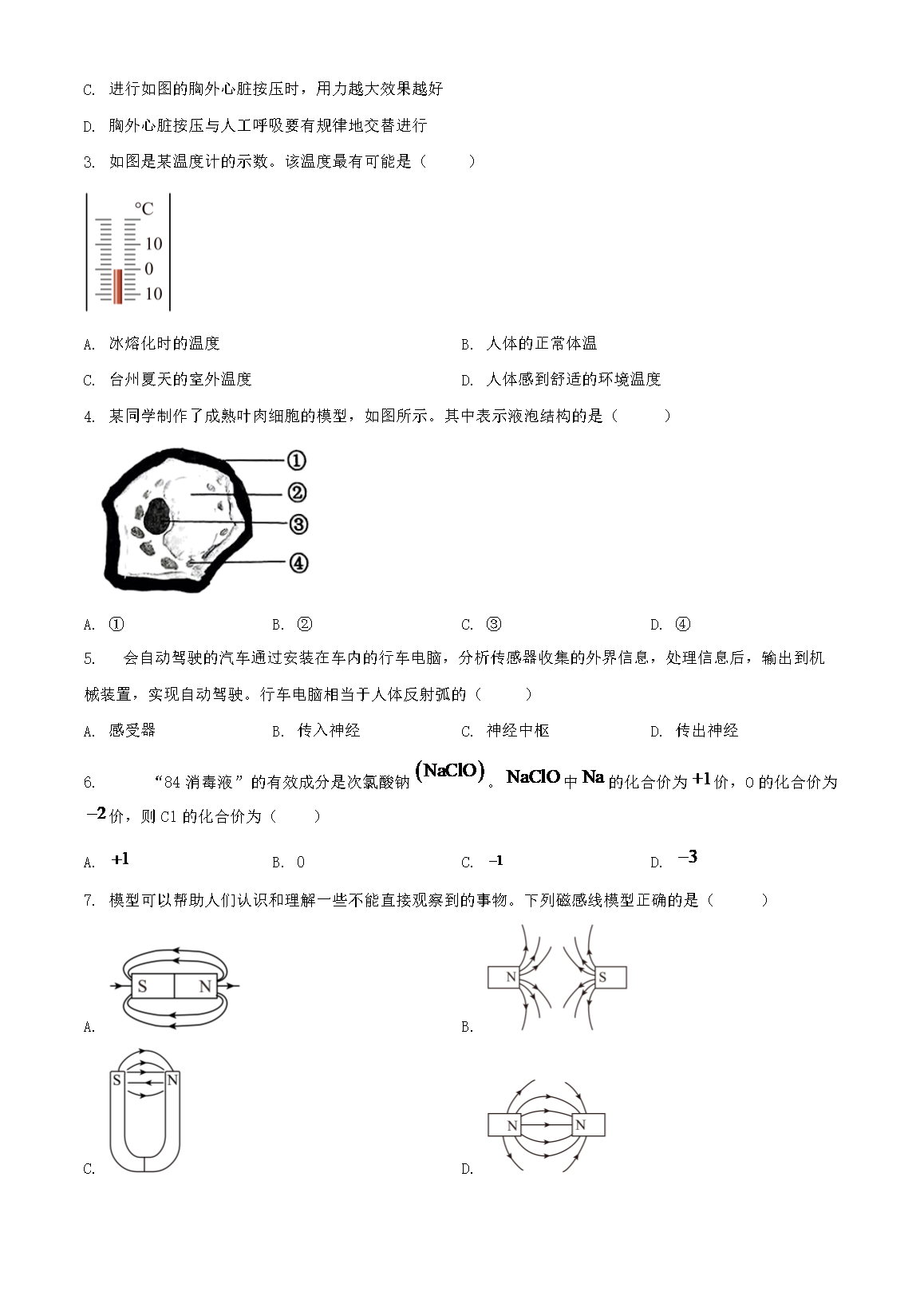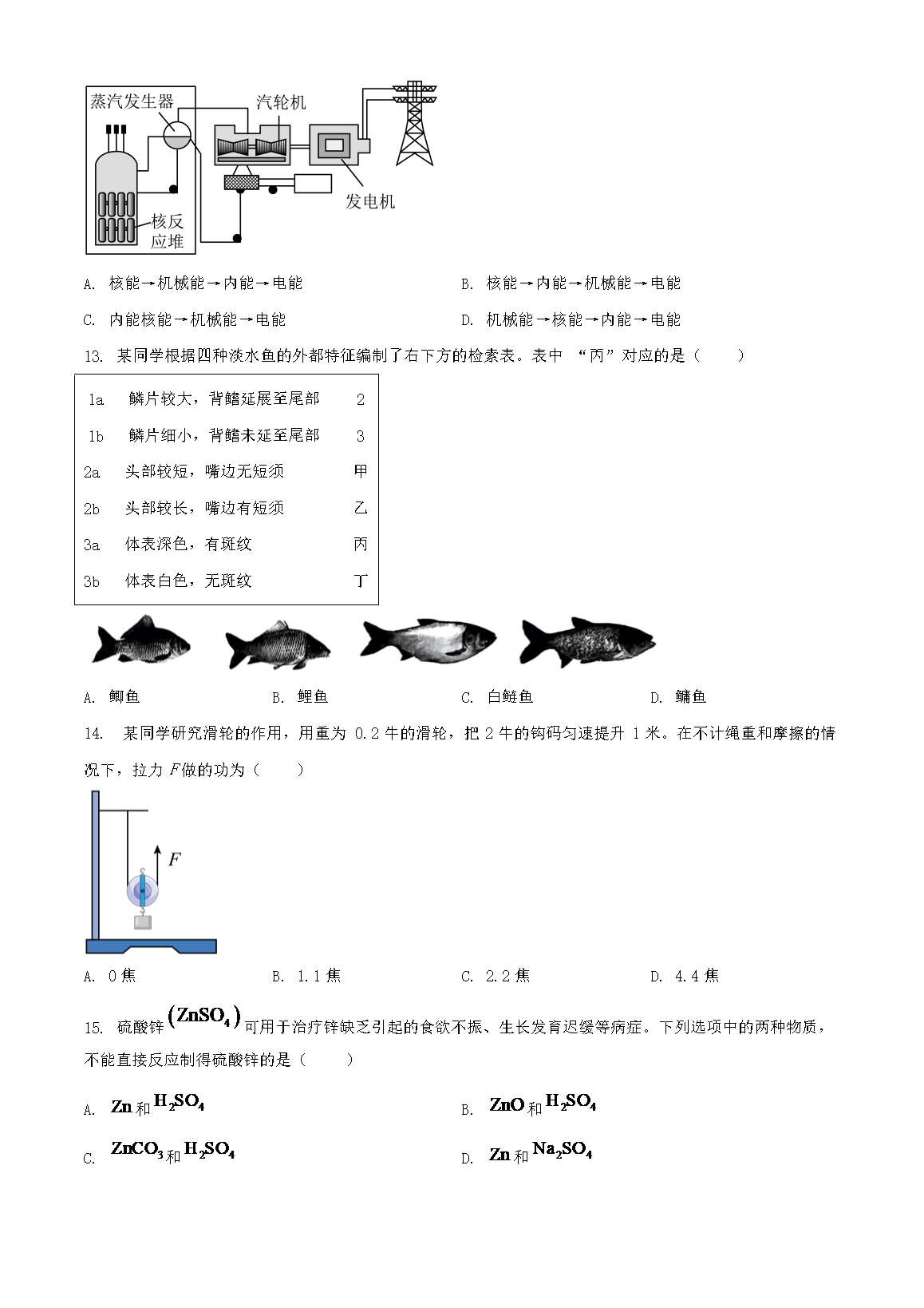 【文档名称】 2023年浙江台州中考科学试题及答案(Word版).doc