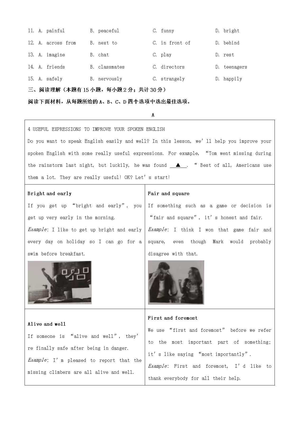 【文档名称】 2023年浙江台州中考英语试题及答案(Word版).doc