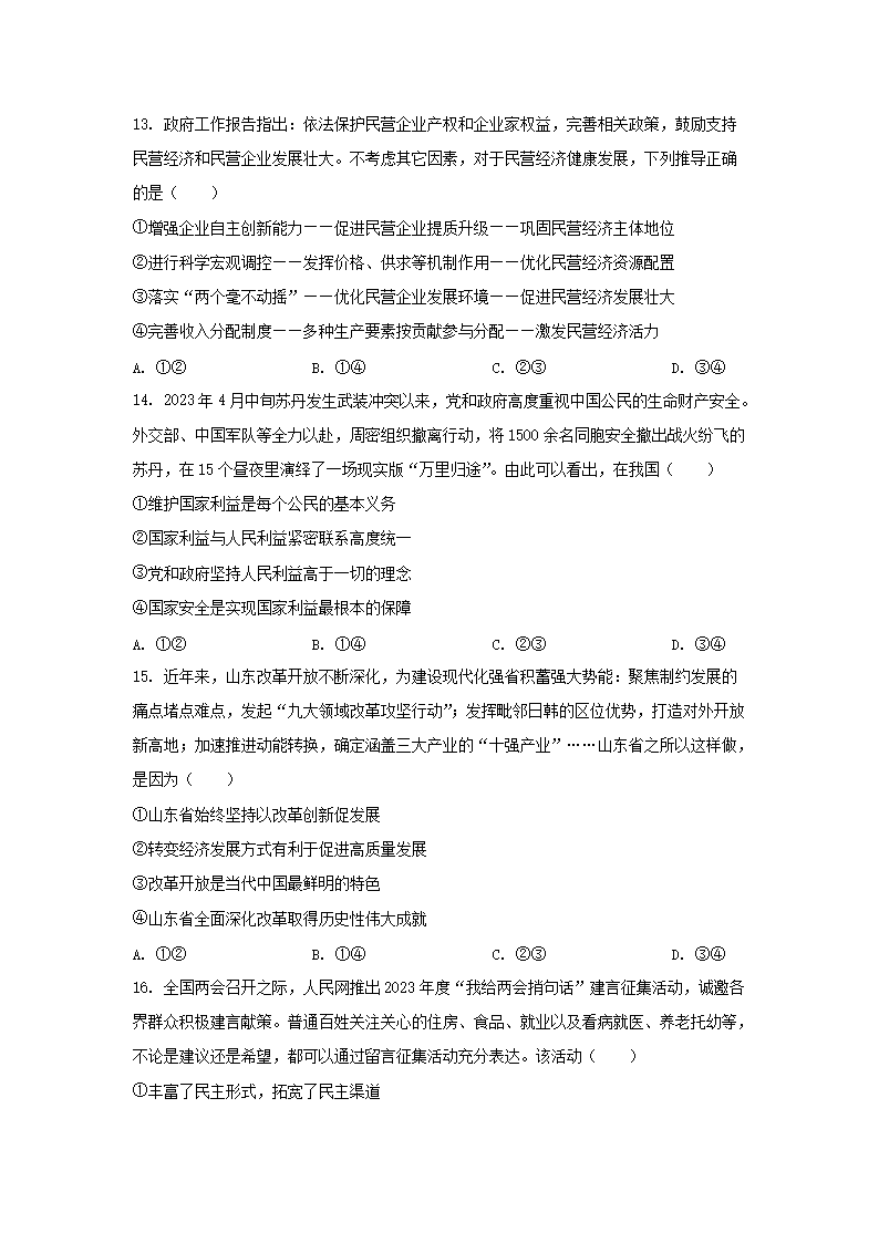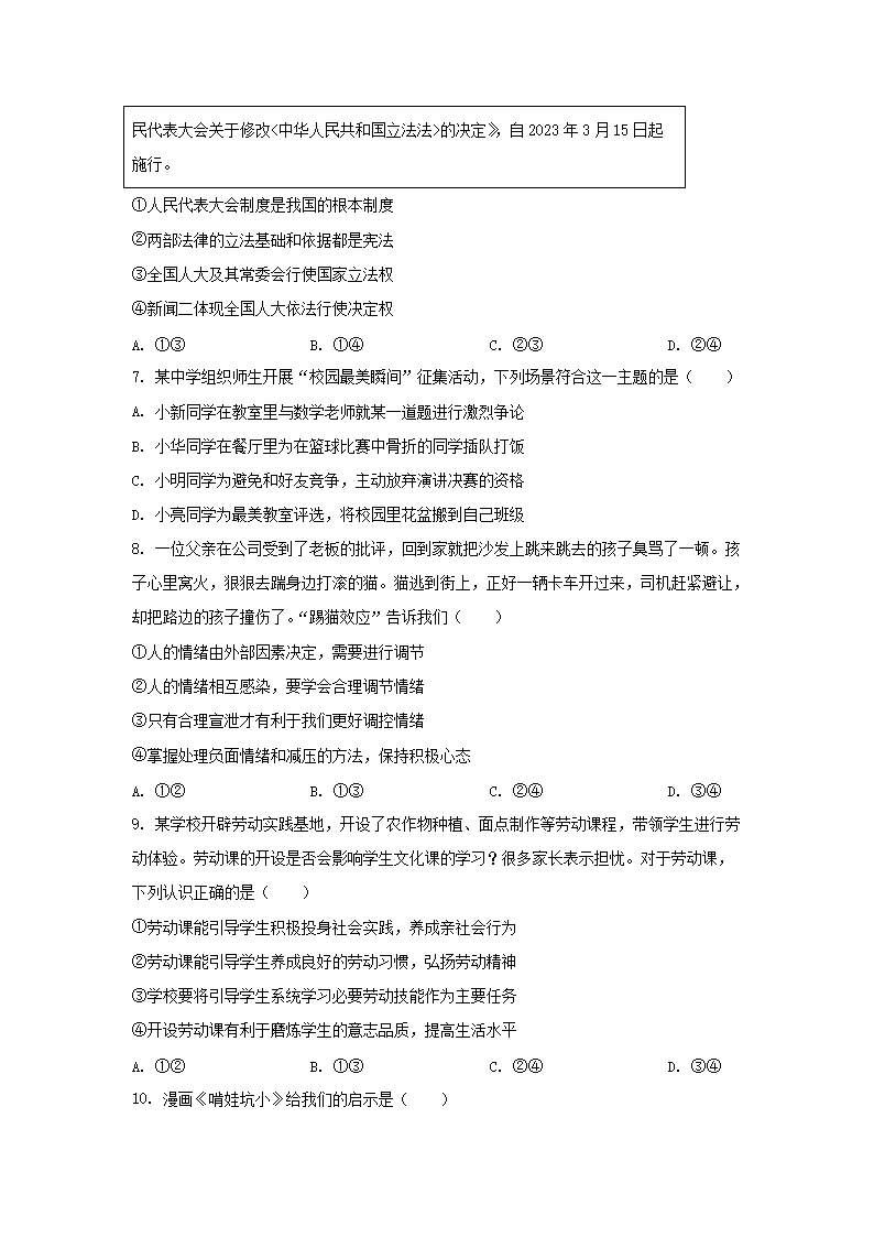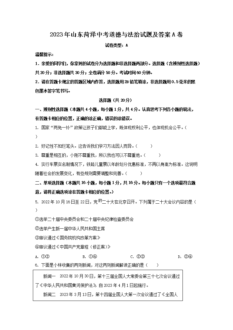 【文档名称】 2023年山东菏泽中考道德与法治试题及答案A卷(Word版).doc