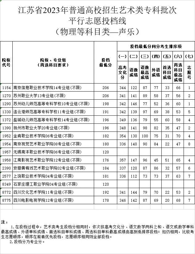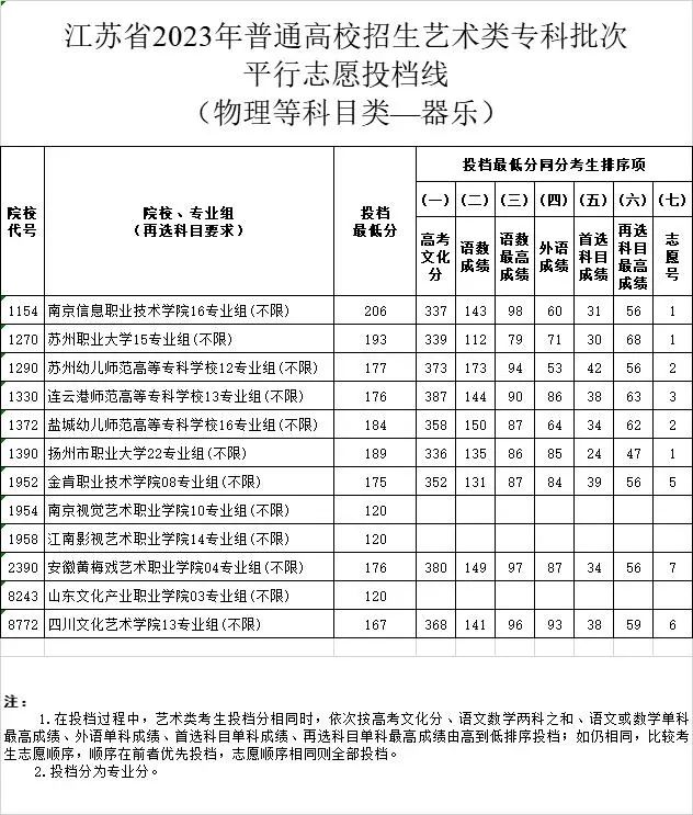 【#高考# #2023年江苏高考招生体育类、艺术类专科批次平行志愿投档分数线#】©无忧考网高考频道从江苏省教育考试院了解到,2023年江苏高考招生体育类、艺术类专科批次平行志愿投档分数线已公布,具体如下: