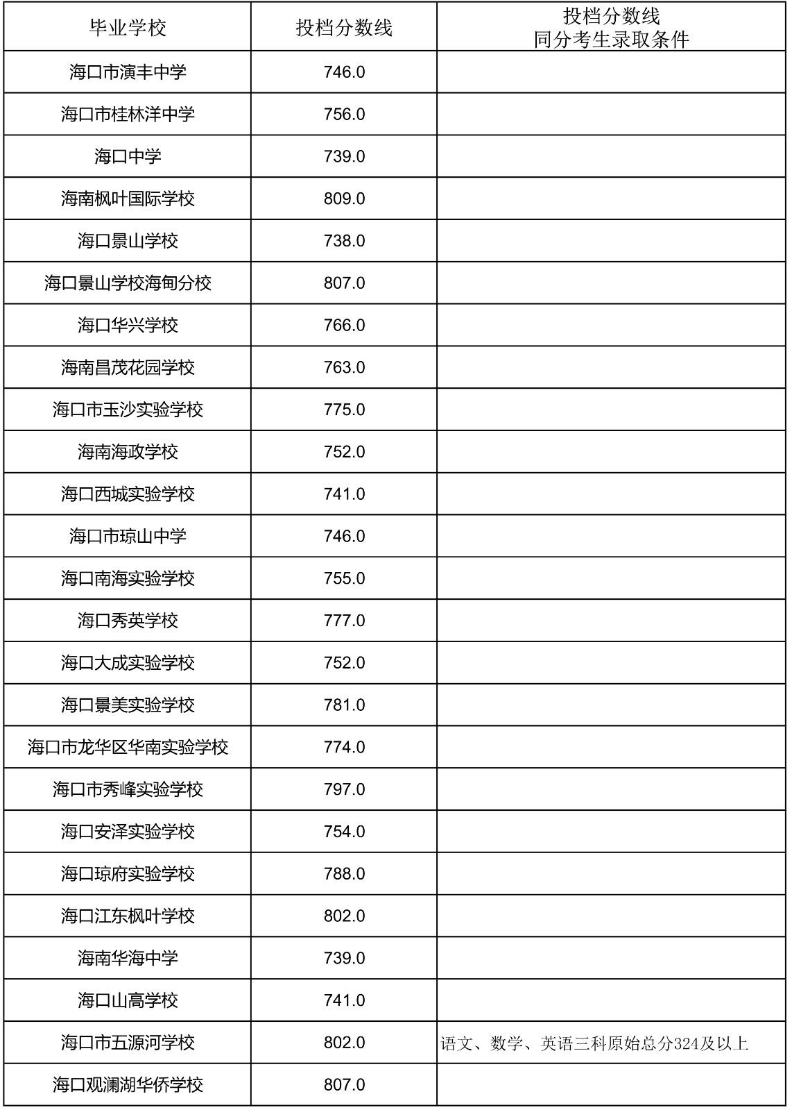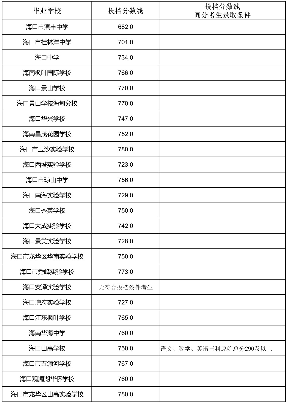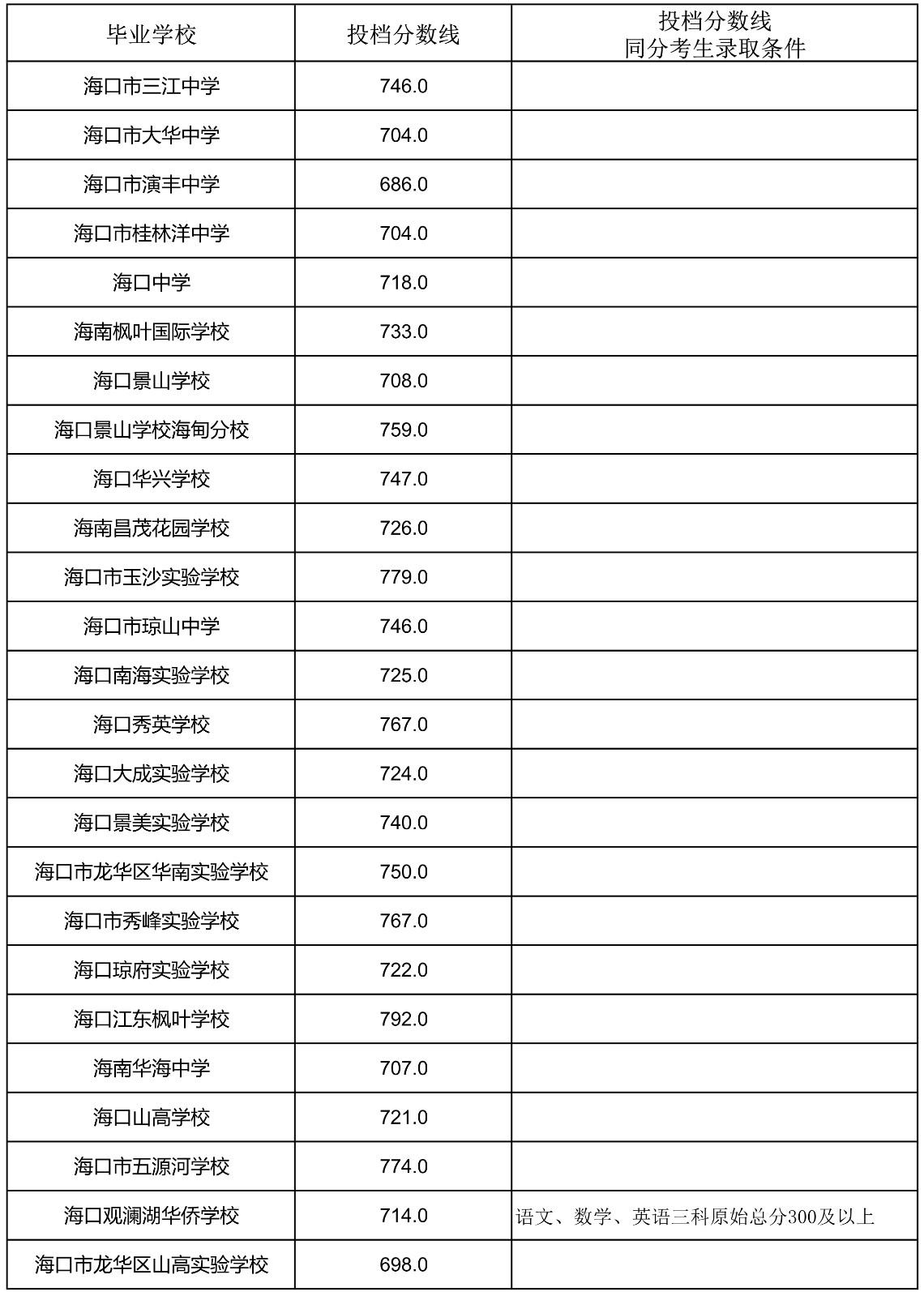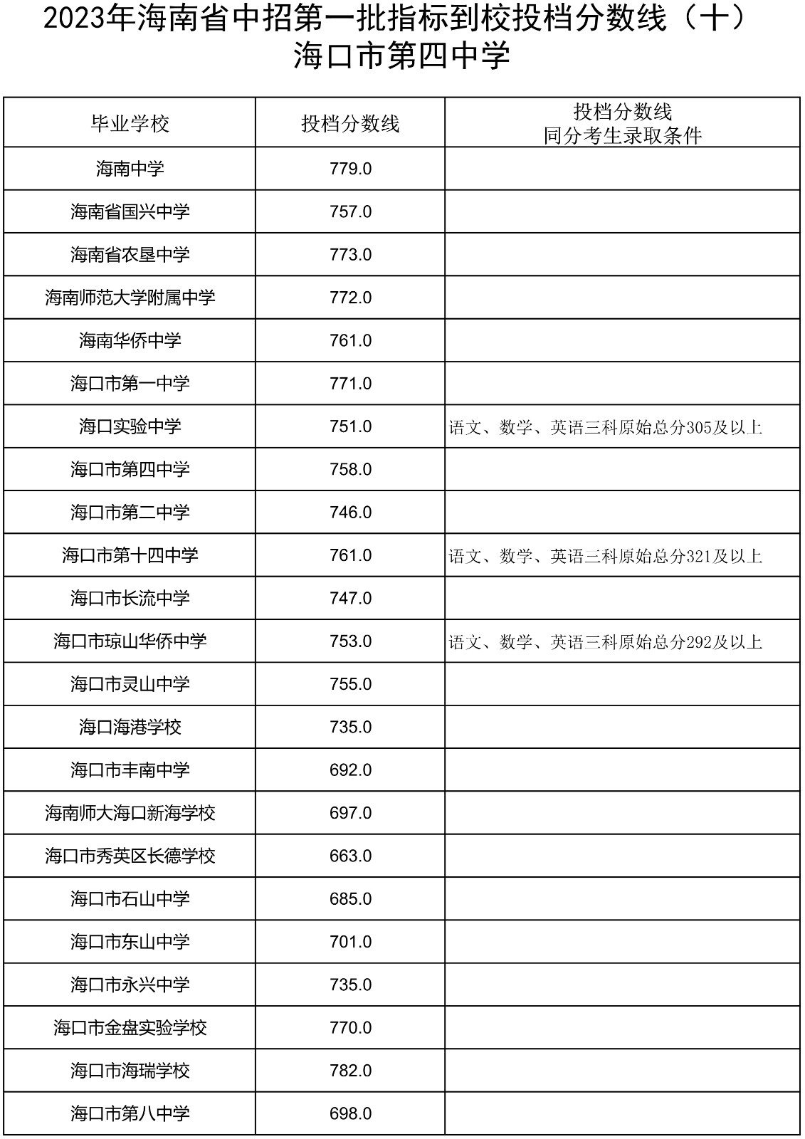 2023年海南省中招第一批指标到校投档分数线(7-13)
