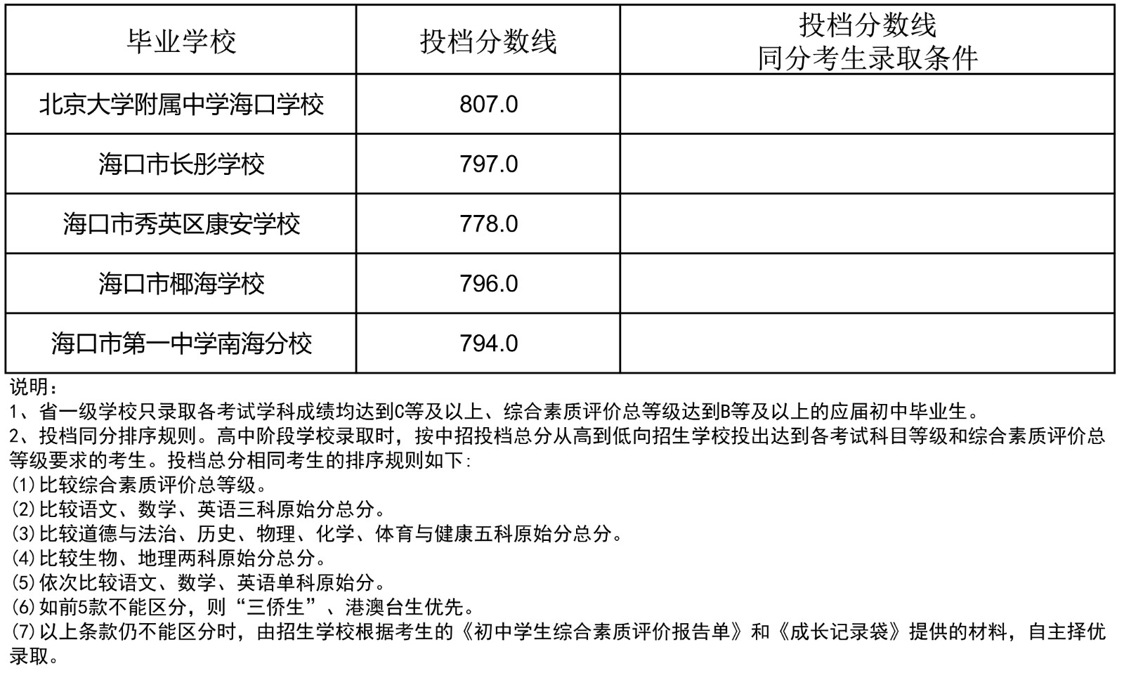 无忧考网从海南省考试局了解到,2023年海南省中招第一批指标到校投档分数线(7-13)已公布,详细内容如下: