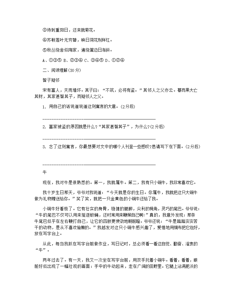 【文档预览】 无忧考网整理发布2022年贵州省小升初语文真题及答案解析(Word版),前五页预览如下: