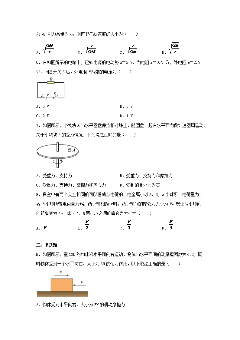 【文档名称】 2023年云南普通高中学业水平考试物理试题(Word版).doc