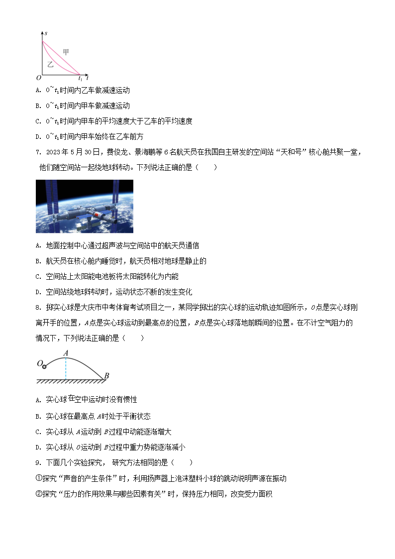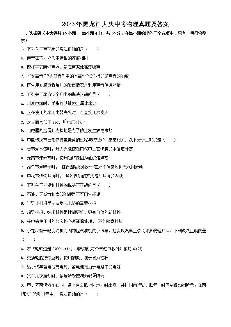 【文档名称】 2023年黑龙江大庆中考物理真题及答案(Word版).doc