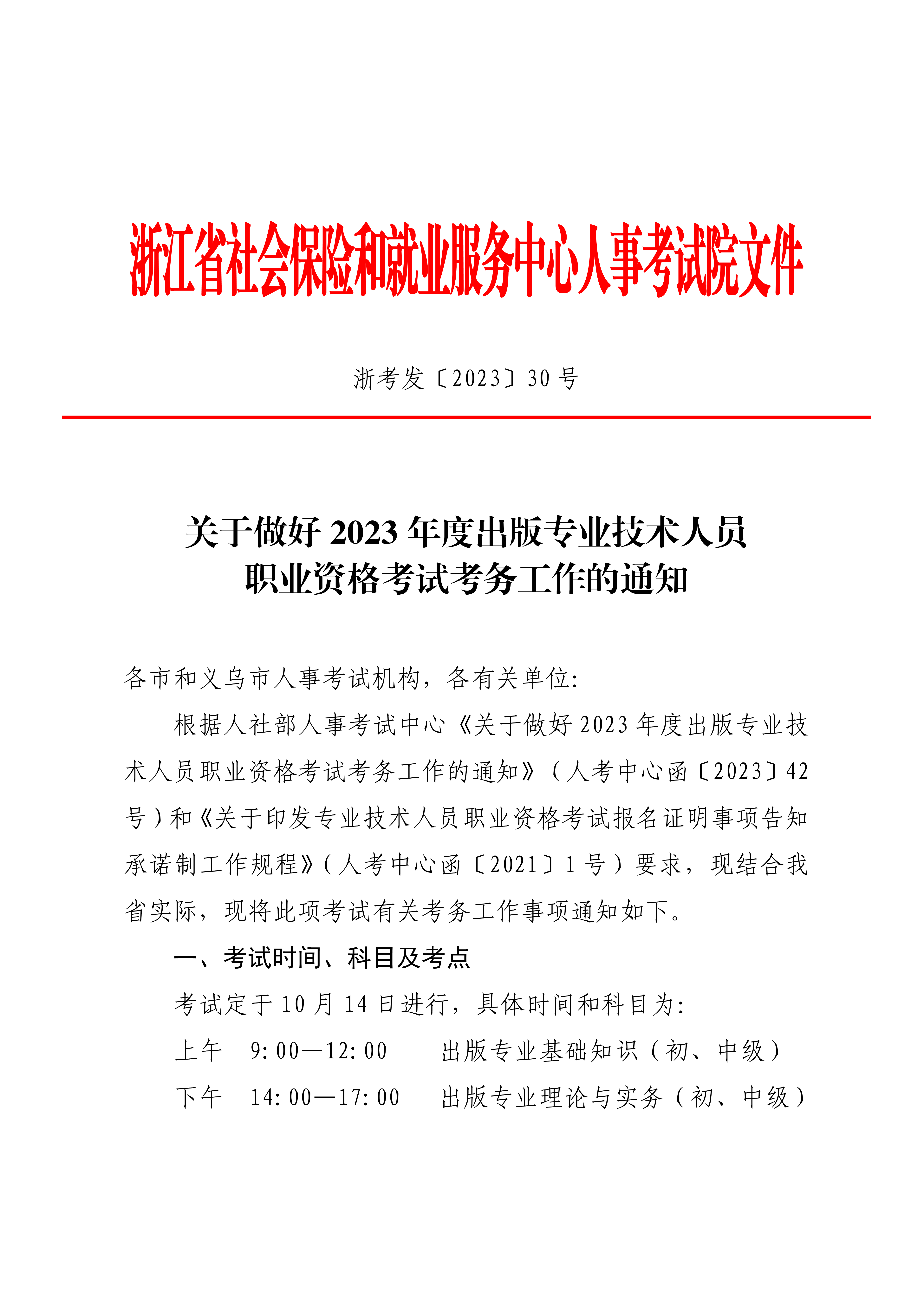 2023年浙江出版专业技术人员职业资格考试考务工作的通知[8月15日起]