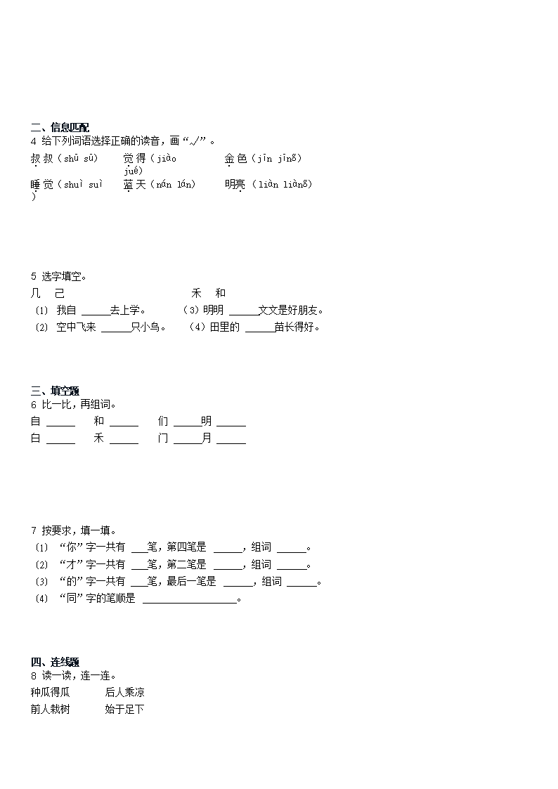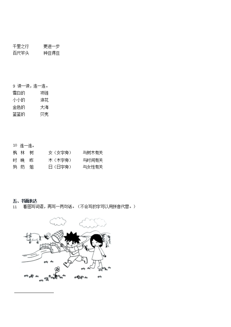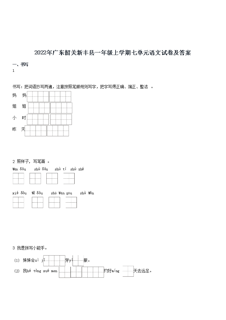 【文档预览】 无忧考网整理发布2022年广东韶关新丰县一年级上学期七单元语文试卷及答案(Word版),前五页预览如下: