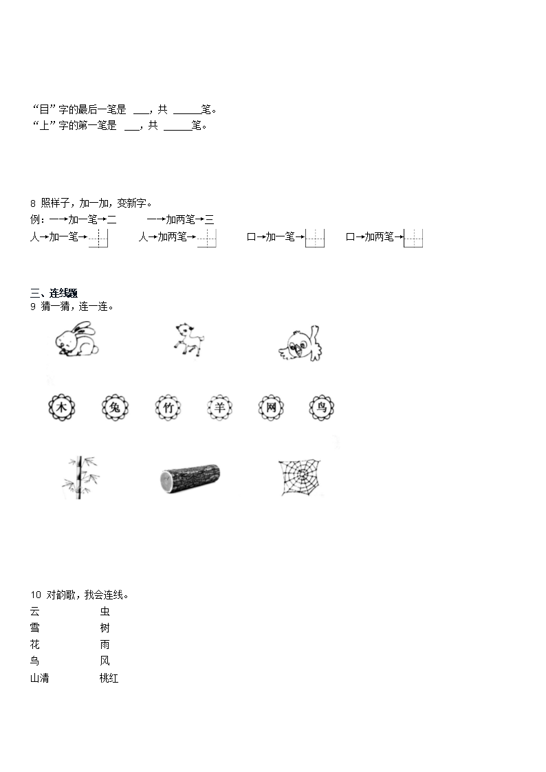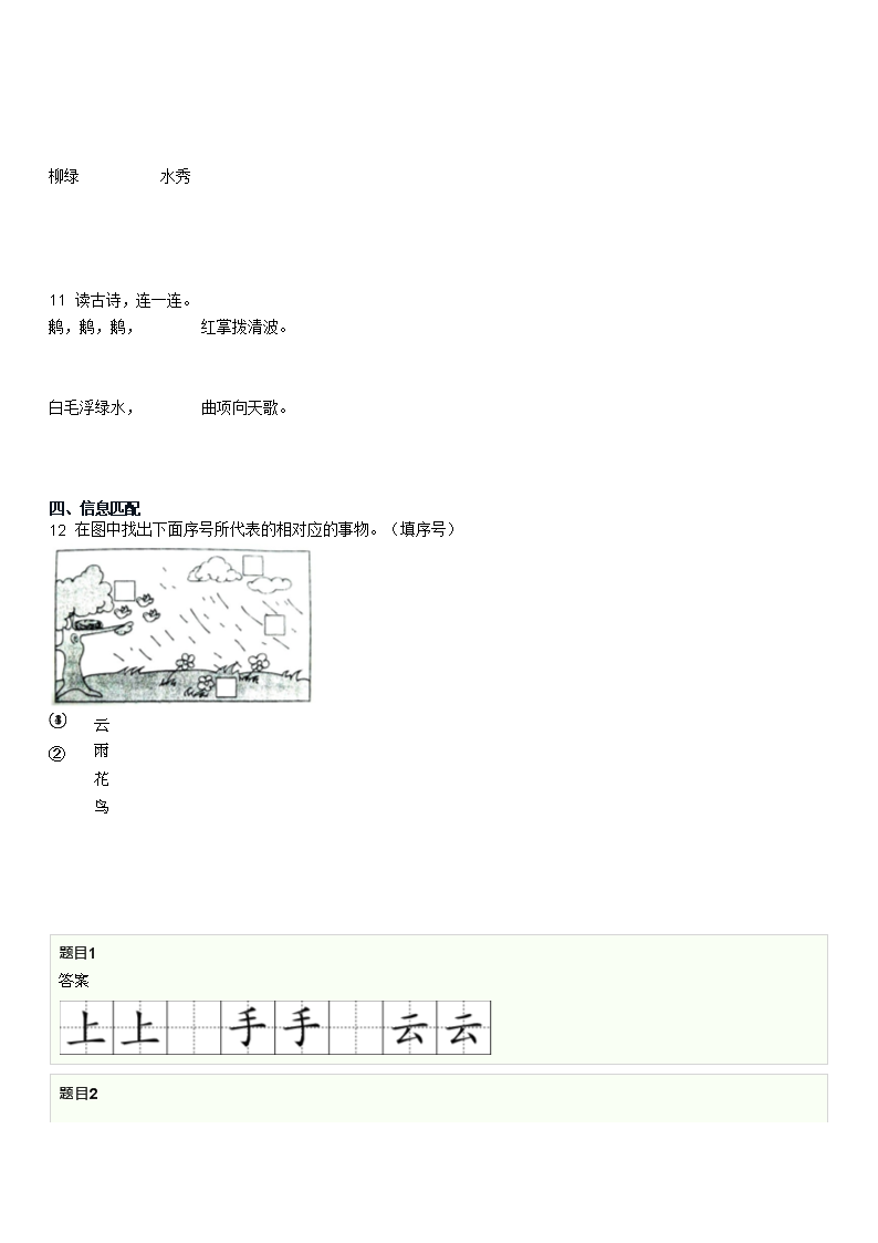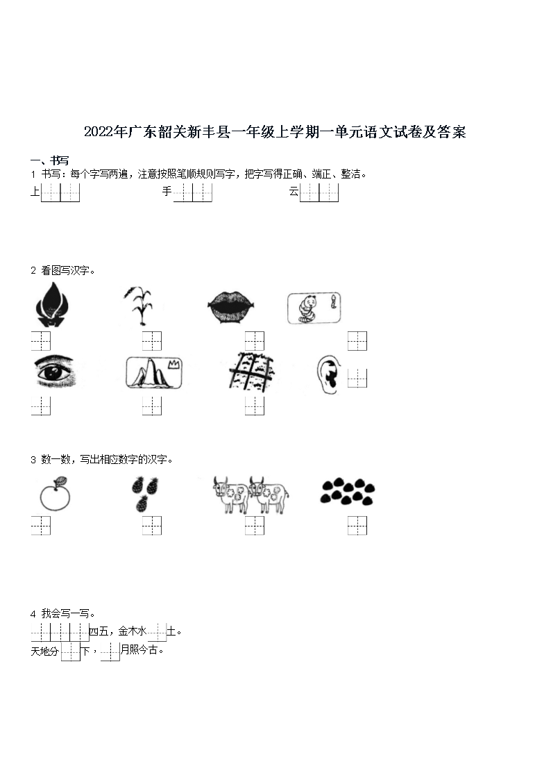 【文档预览】 无忧考网整理发布2022年广东韶关新丰县一年级上学期一单元语文试卷及答案(Word版),前五页预览如下: