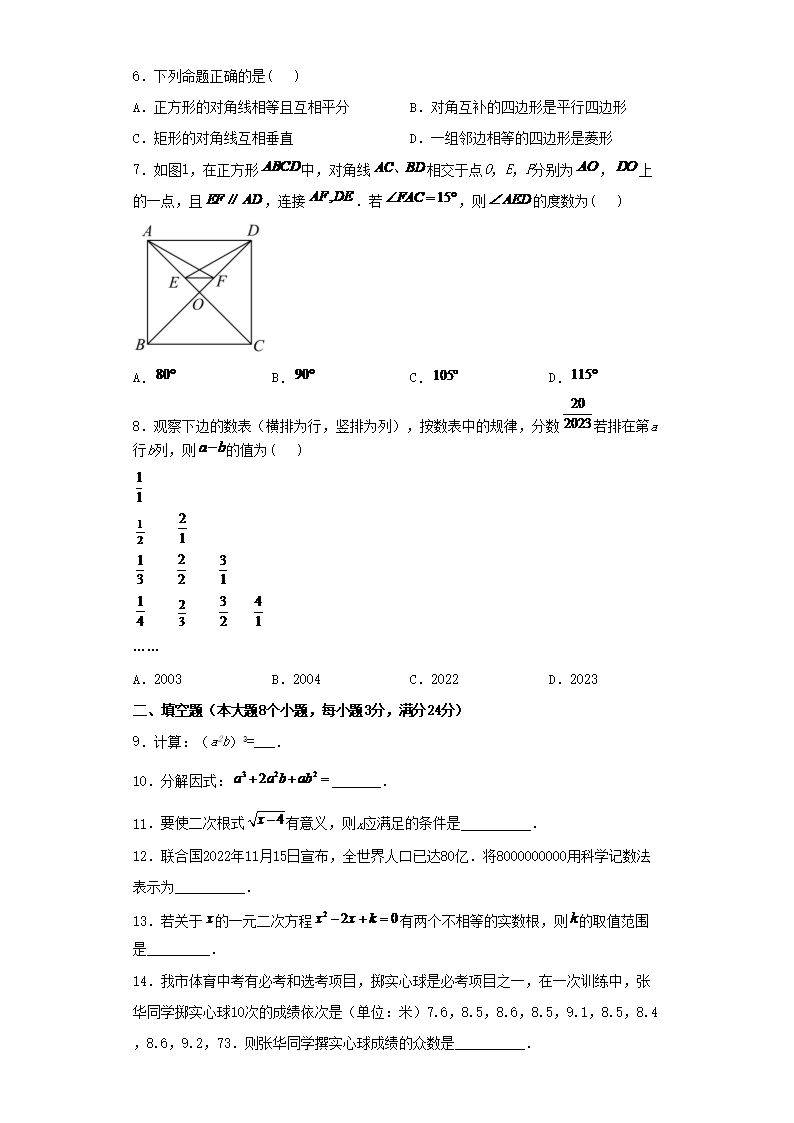 【文档名称】 2023年湖南常德中考数学真题及答案(Word版).doc