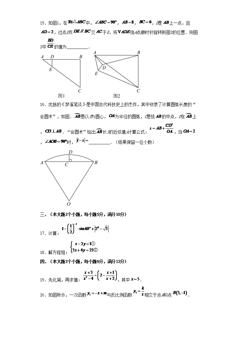【文档预览】 无忧考网整理发布2023年湖南常德中考数学真题及答案(Word版),前五页预览如下: