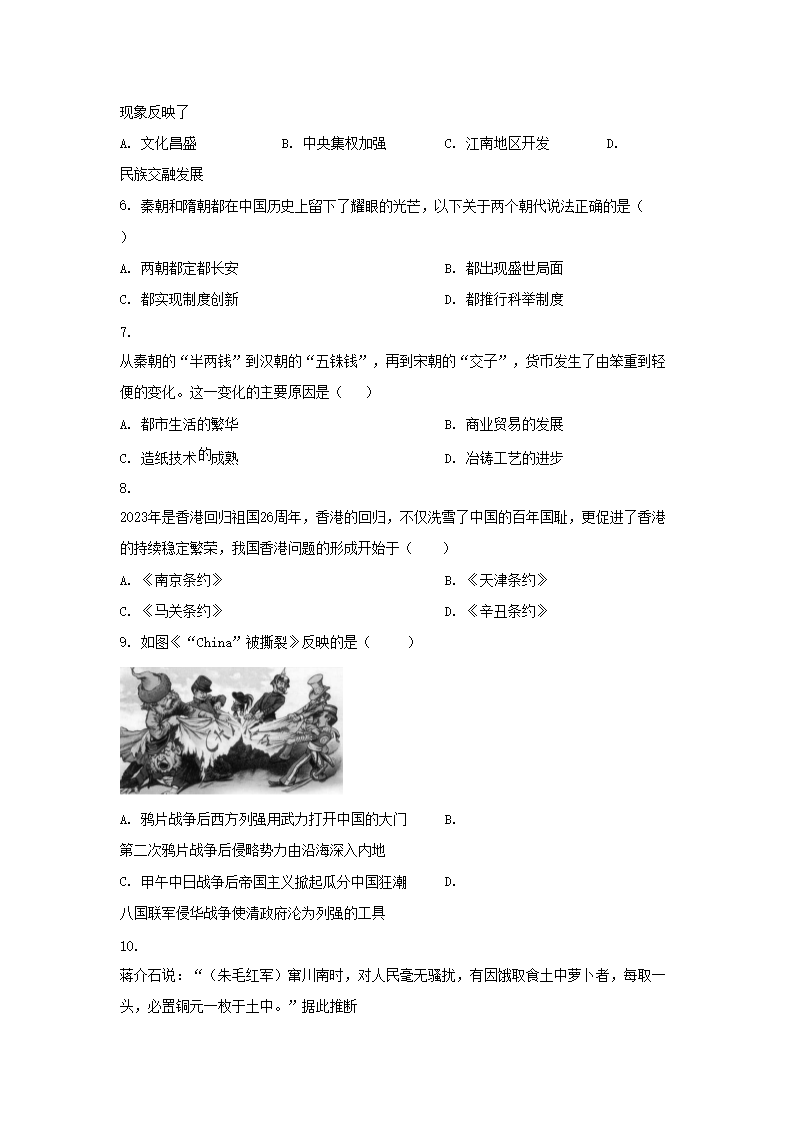 【文档名称】 2023年湖南常德中考历史真题及答案(Word版).doc