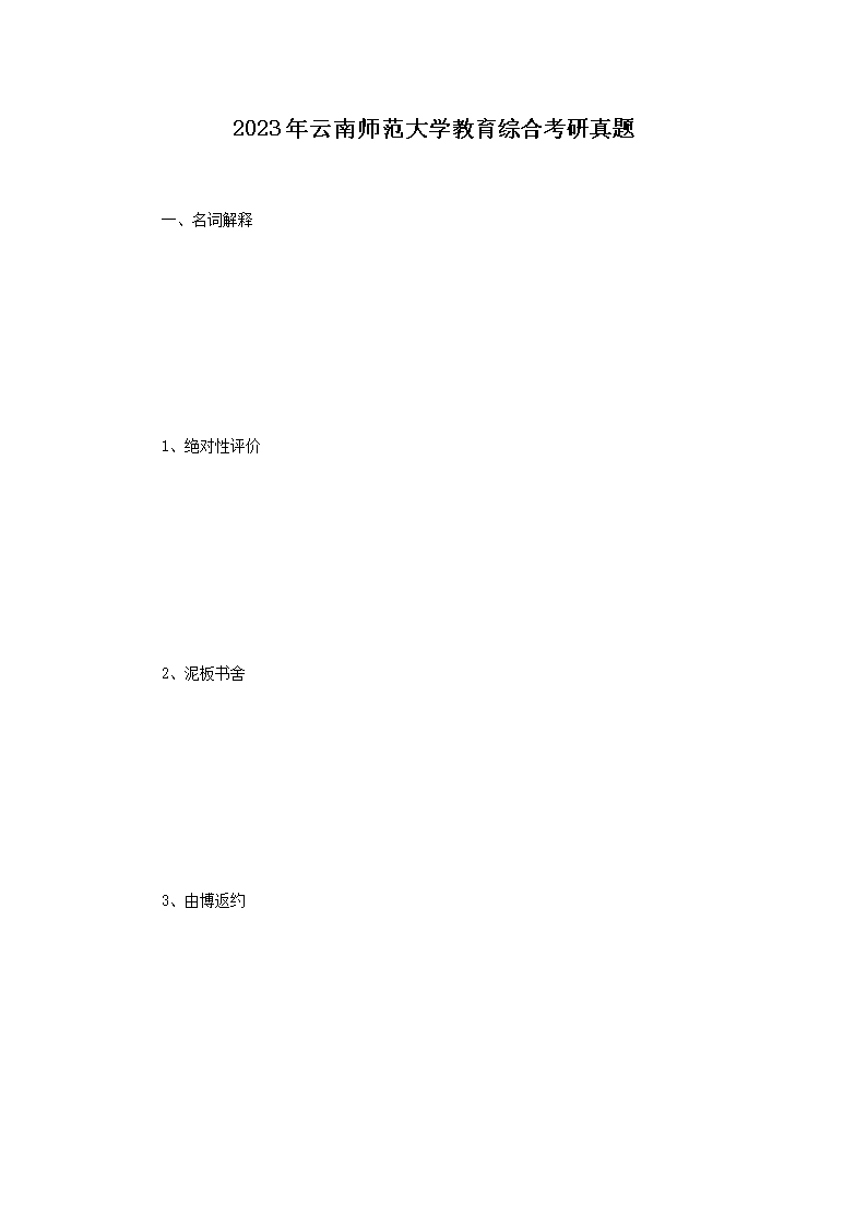 【文档名称】 2023年云南师范大学教育综合考研真题(Word版).doc