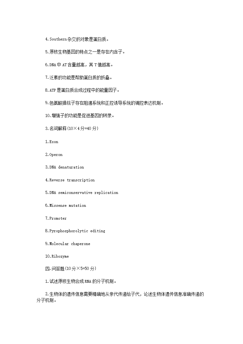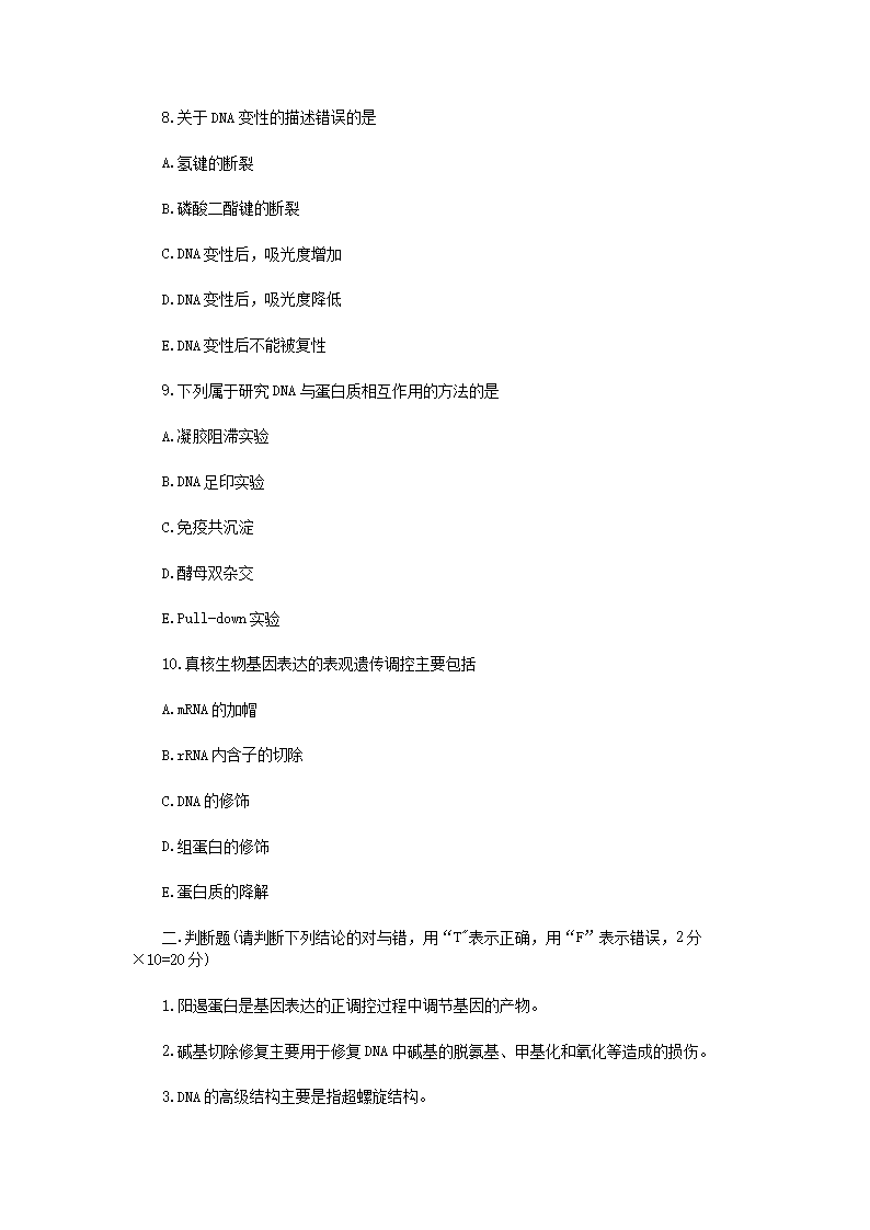 【文档名称】 2021年江苏常州大学分子生物学考研真题A卷(Word版).doc