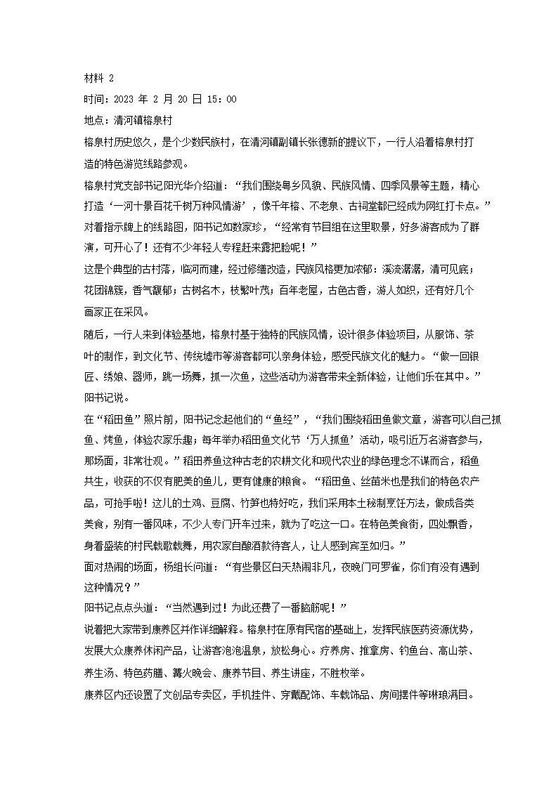 【文档名称】 2023年广东公务员申论考试真题及答案-乡镇卷(Word版).doc