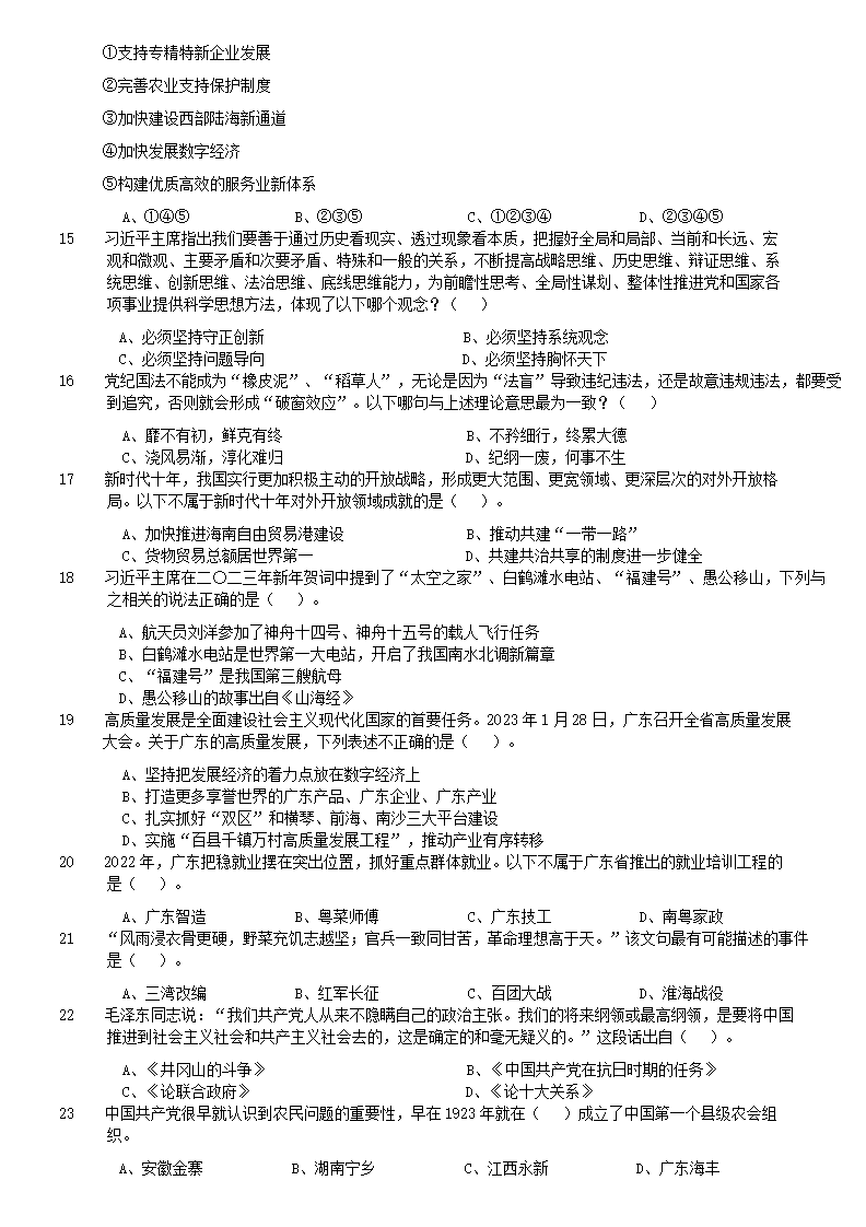 【文档名称】 2023年广东公务员行测考试真题及答案-乡镇卷(Word版).doc