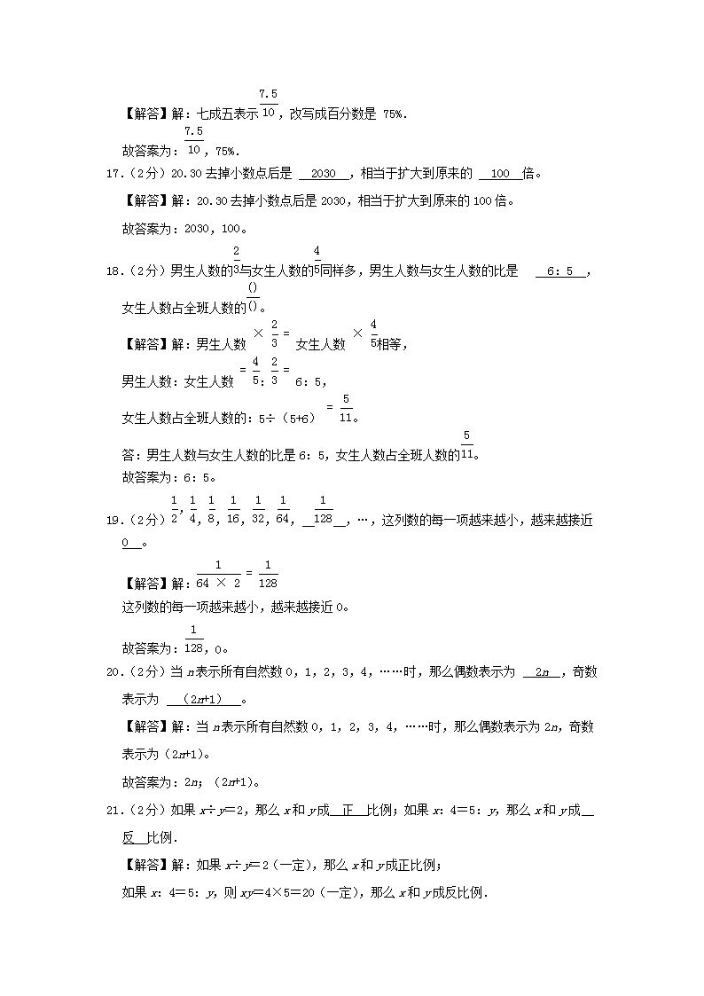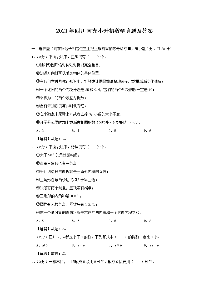 【文档名称】 2021年四川南充小升初数学真题及答案(Word版).doc