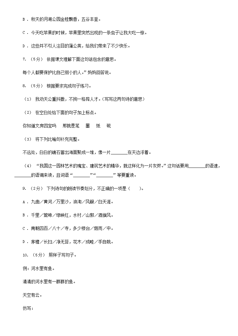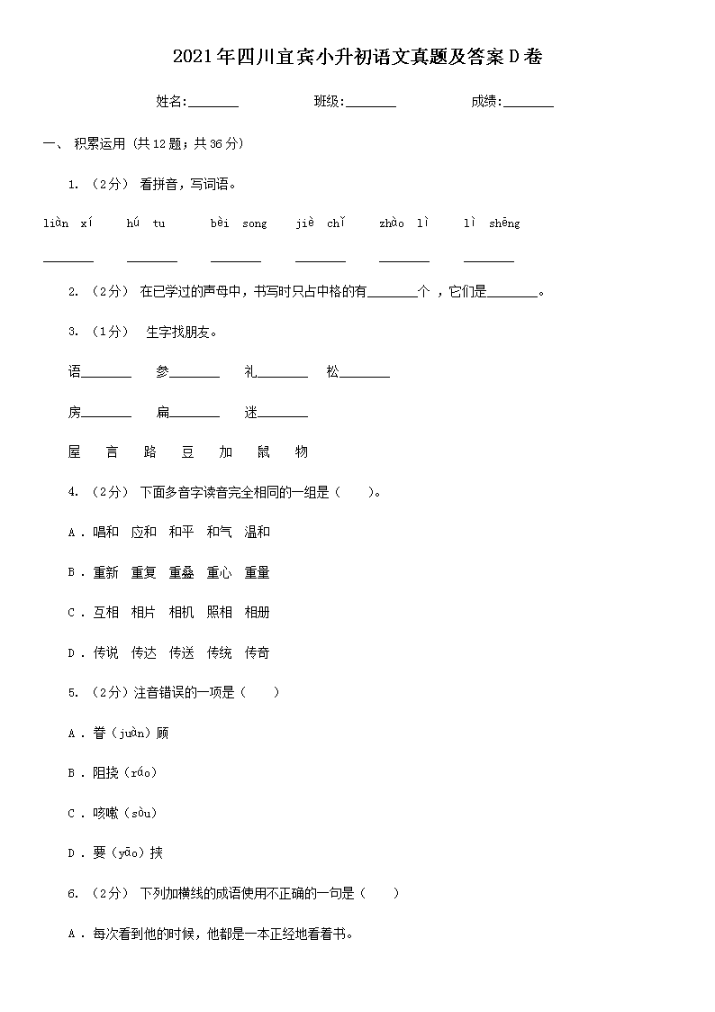 【文档名称】 2021年四川宜宾小升初语文真题及答案D卷(Word版).doc