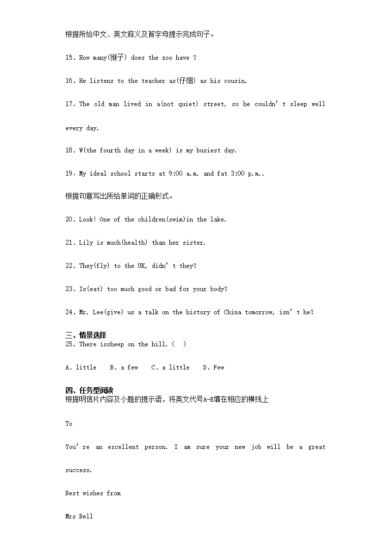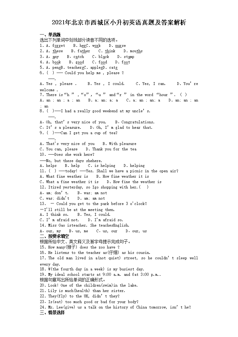 【文档预览】 无忧考网整理发布2021年北京市西城区小升初英语真题及答案解析(Word版),前五页预览如下: