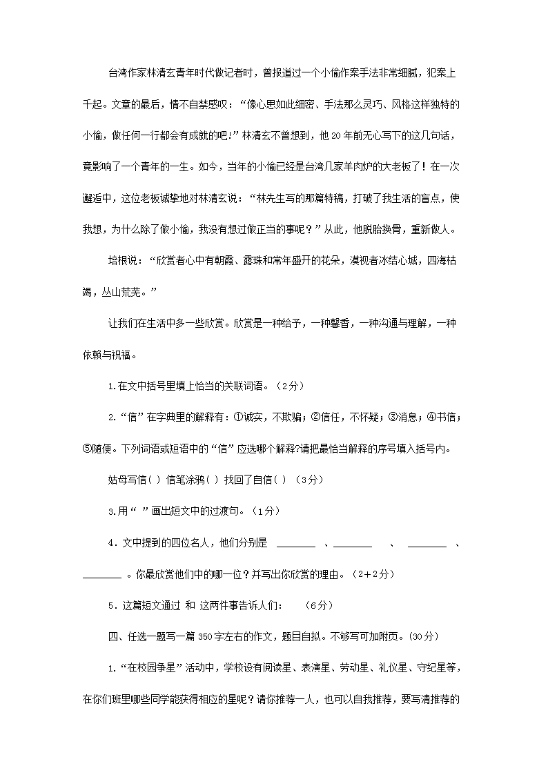 【文档预览】 无忧考网整理发布2022年四川南充小升初语文真题及答案(Word版),前五页预览如下: