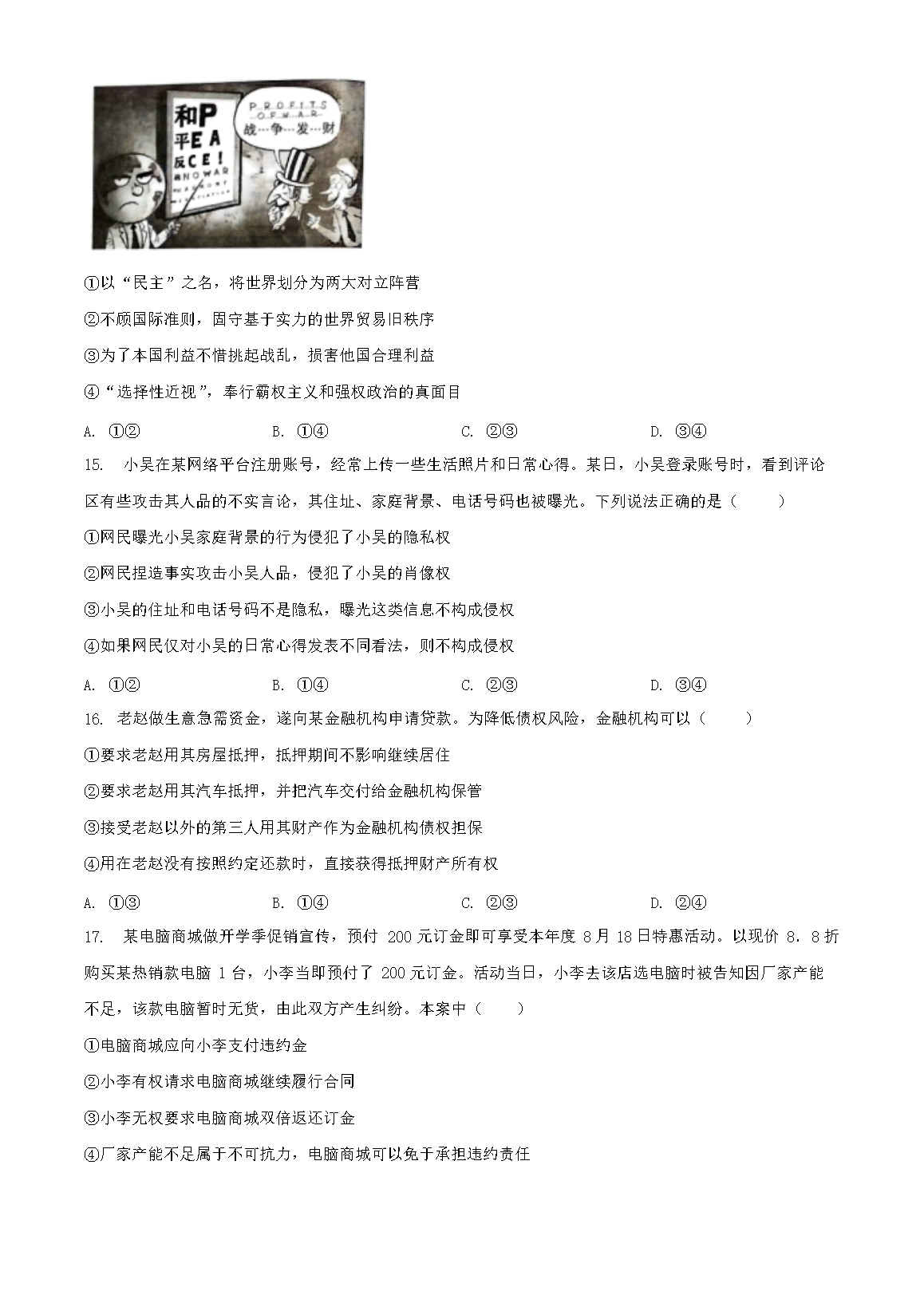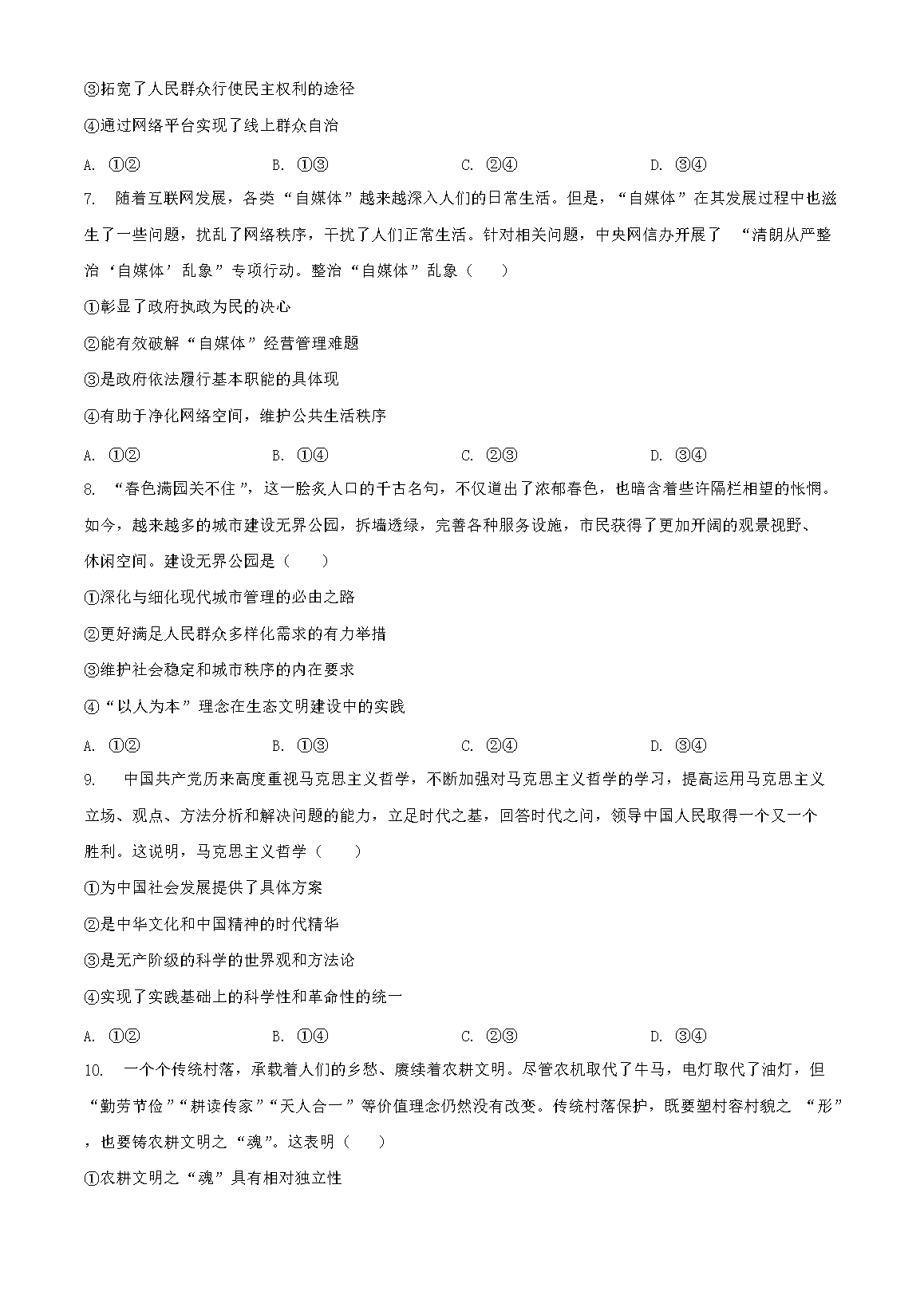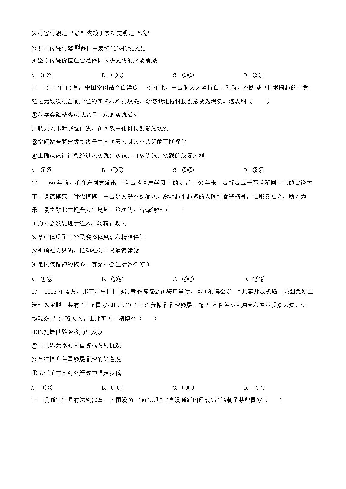 【文档名称】 2023年海南普通高中学业水平选择性考试思想政治真题及答案(Word版).doc