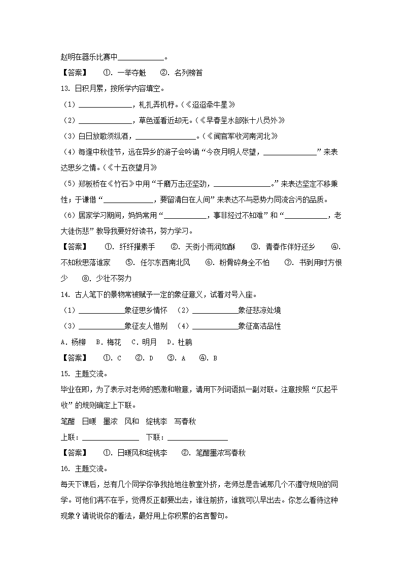 【文档预览】 无忧考网整理发布2022山东枣庄市中区小升初语文真题及答案(Word版),前五页预览如下: