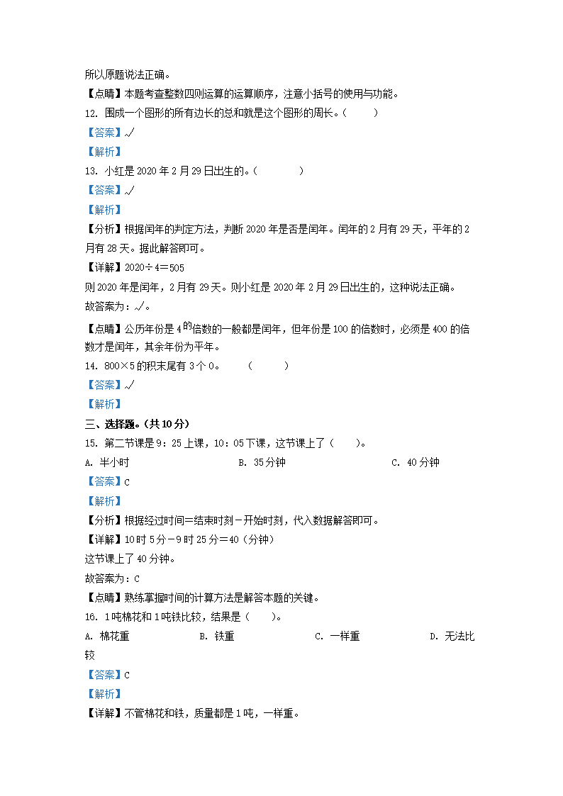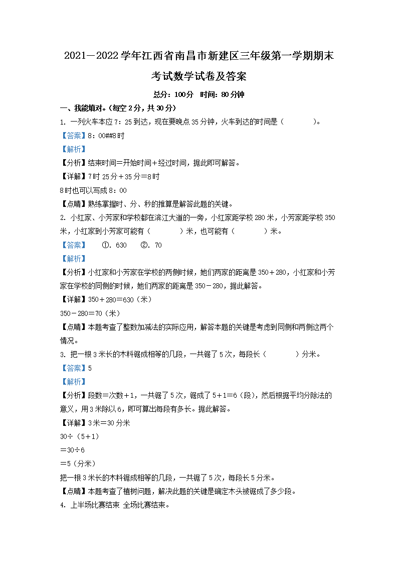 【文档名称】 2021-2022学年江西省南昌市新建区三年级第一学期期末考试数学试卷及答案(Word版).doc
