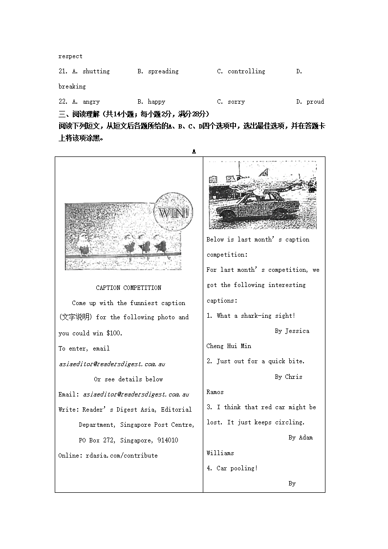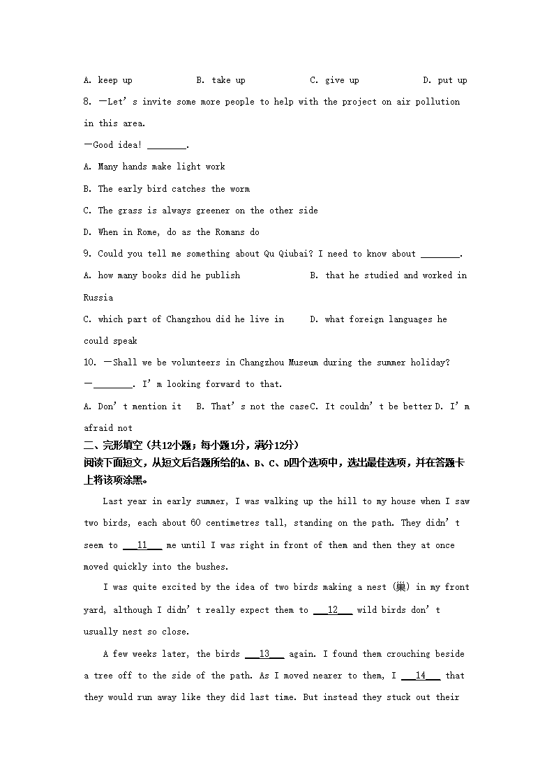 【文档预览】 无忧考网整理发布2023年江苏常州中考英语真题及答案(Word版),前五页预览如下: