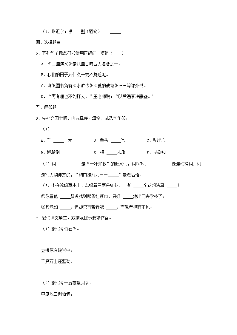 【文档名称】 2021年重庆市丰都县小升初语文真题(Word版).doc