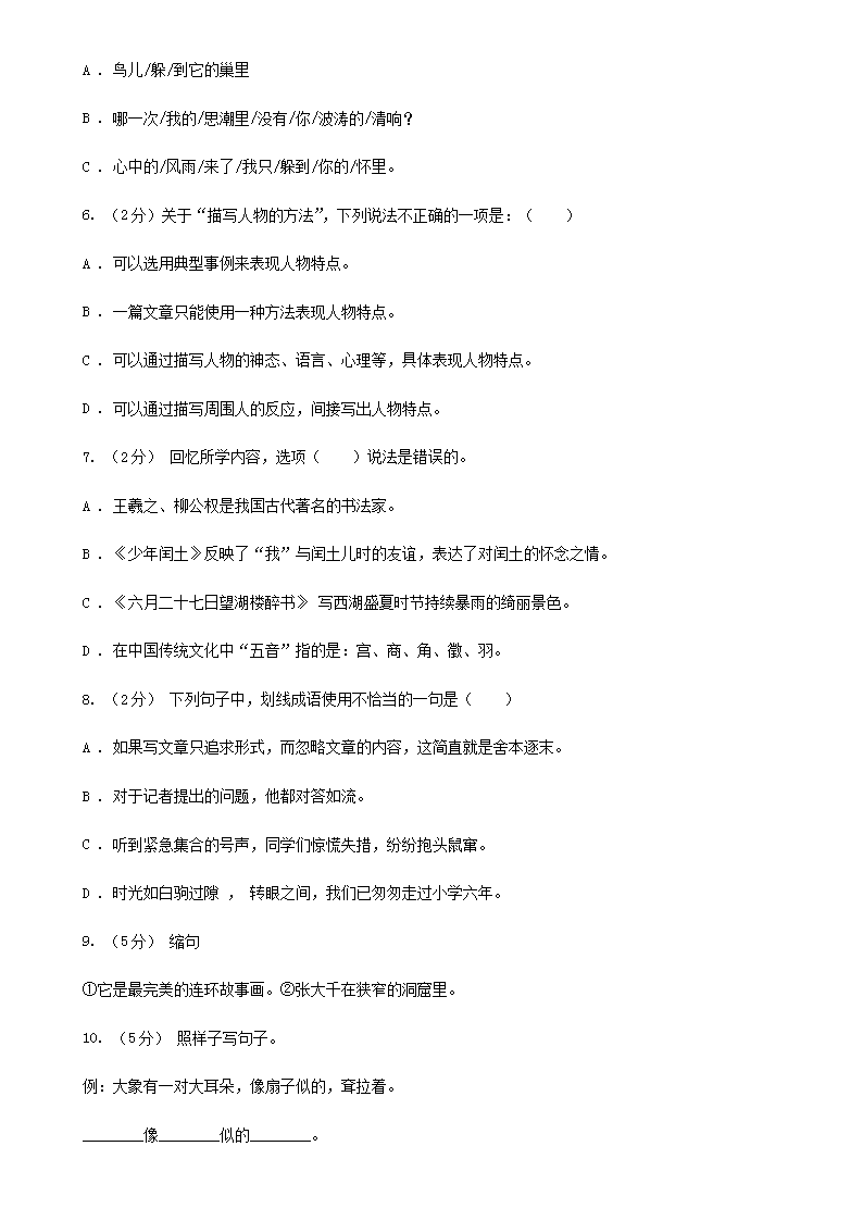 【文档名称】 2020年四川宜宾小升初语文真题及答案D卷(Word版).doc