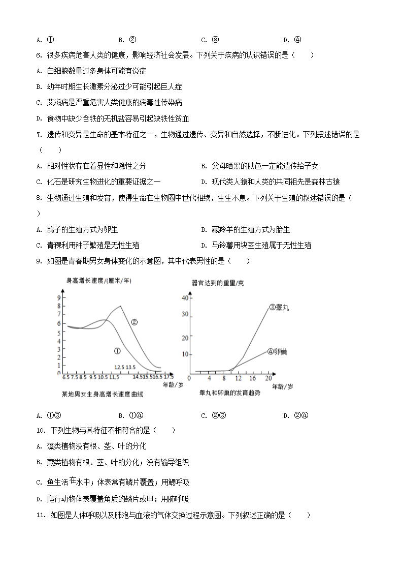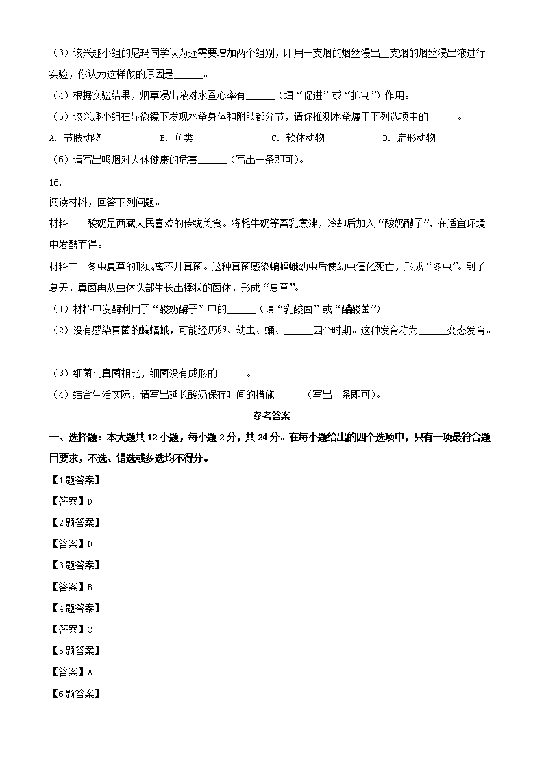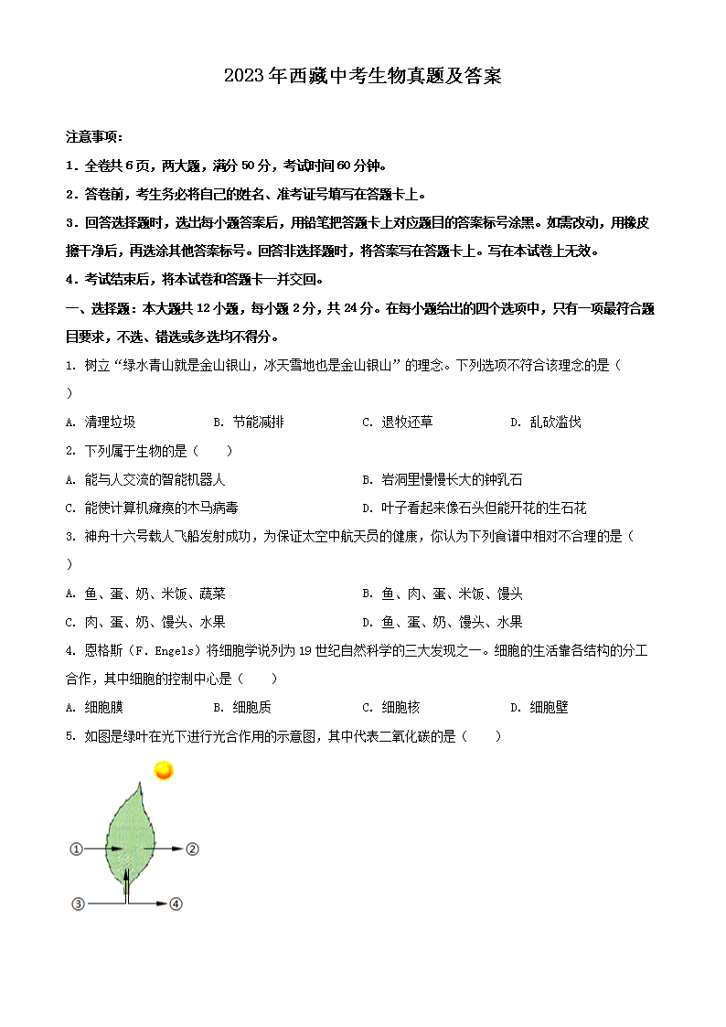 【文档预览】 无忧考网整理发布2023年西藏中考生物真题及答案(Word版),前五页预览如下: