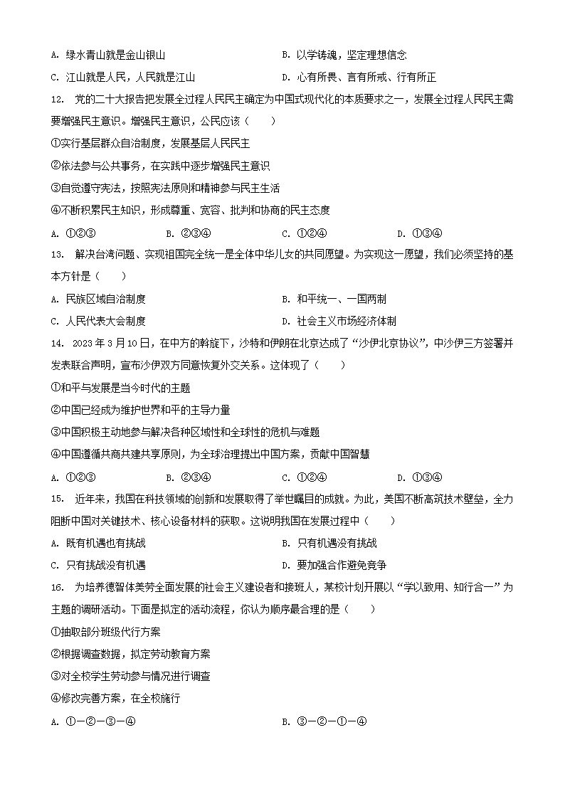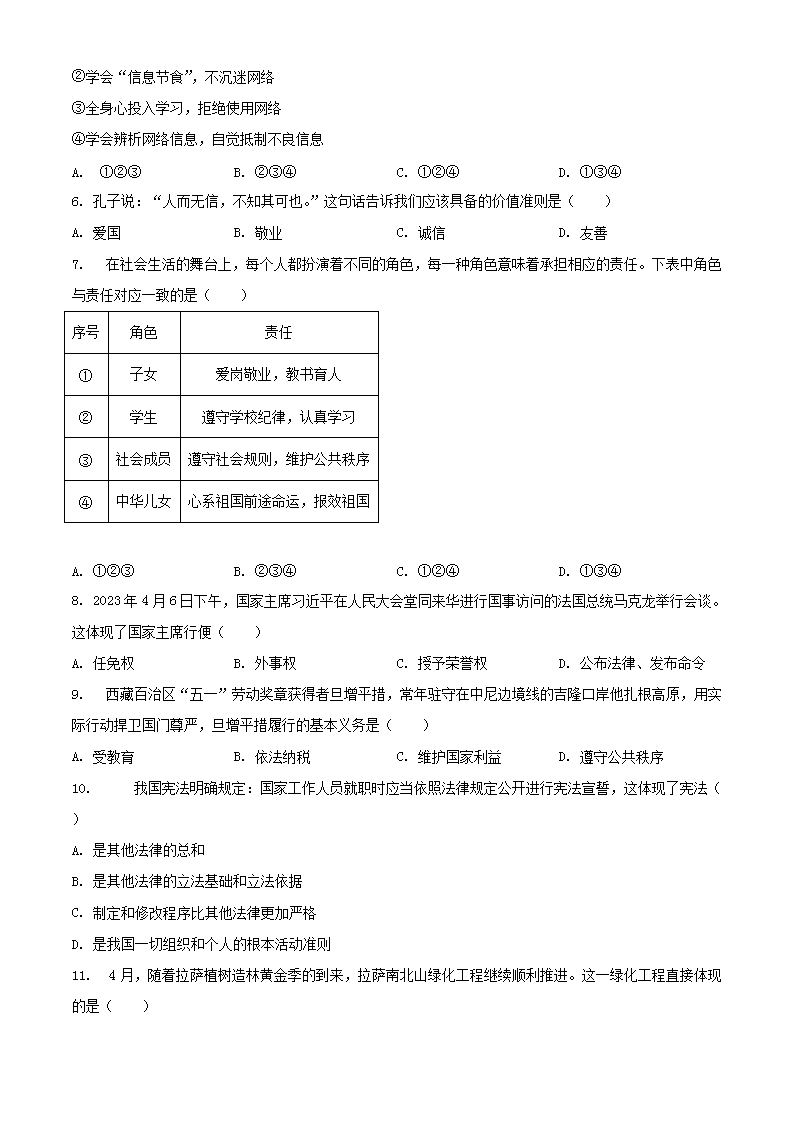 【文档名称】 2023年西藏拉萨中考道德与法治真题及答案(Word版).doc
