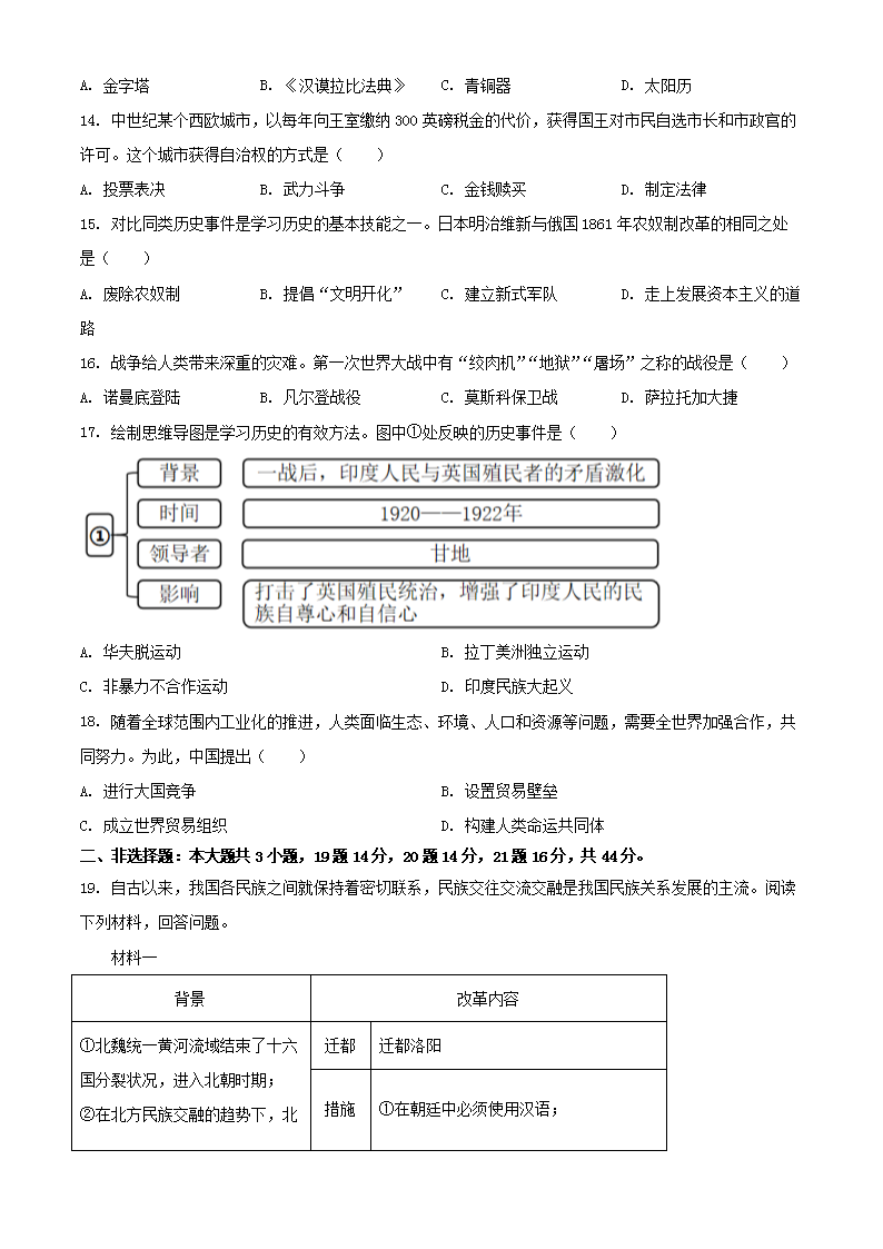 【文档名称】 2023年西藏中考历史真题及答案(Word版).doc