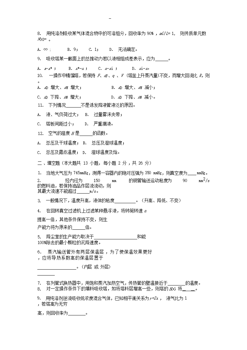 【文档名称】 2023年湖北武汉工程大学化工原理考研真题(Word版).doc