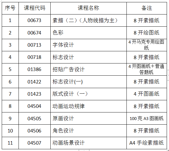 备注:以上11科目使用绘画纸作答,考试考生需要自带绘图工具,请考生自行携带相关的绘图工具。