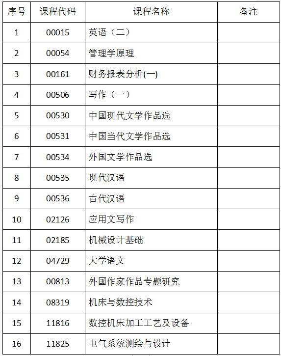 备注:以上16科目使用专用答题卡与普通答题卡不同,专用答题卡上印刷有课程代码和课程名称,监考员下发时需要确认课程代码和课程名称,特别提醒混编考场防止错发。