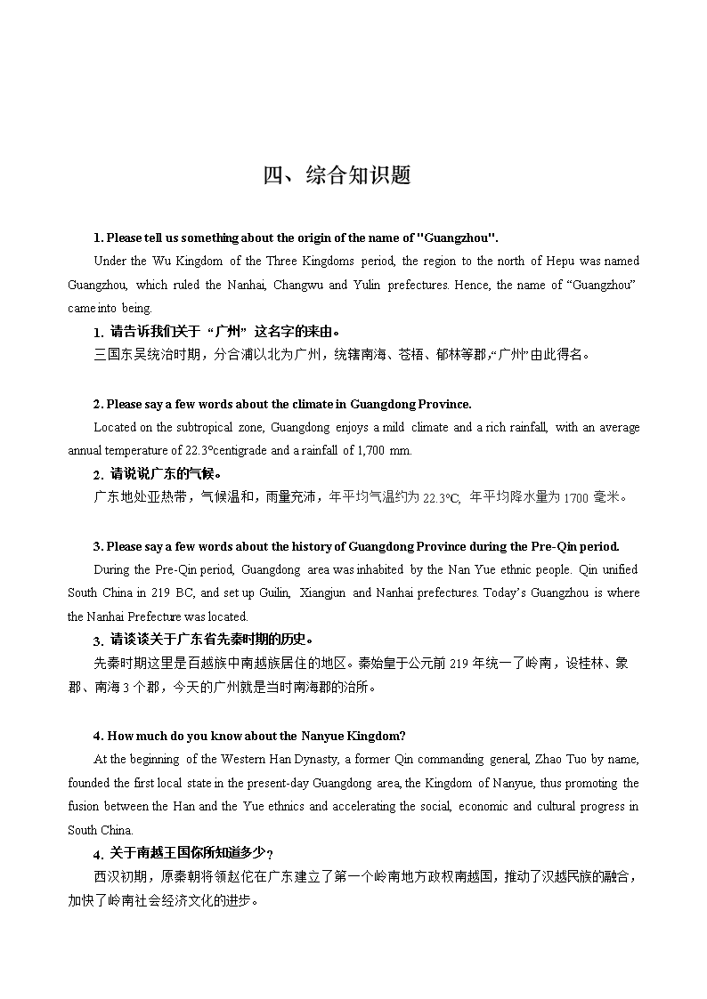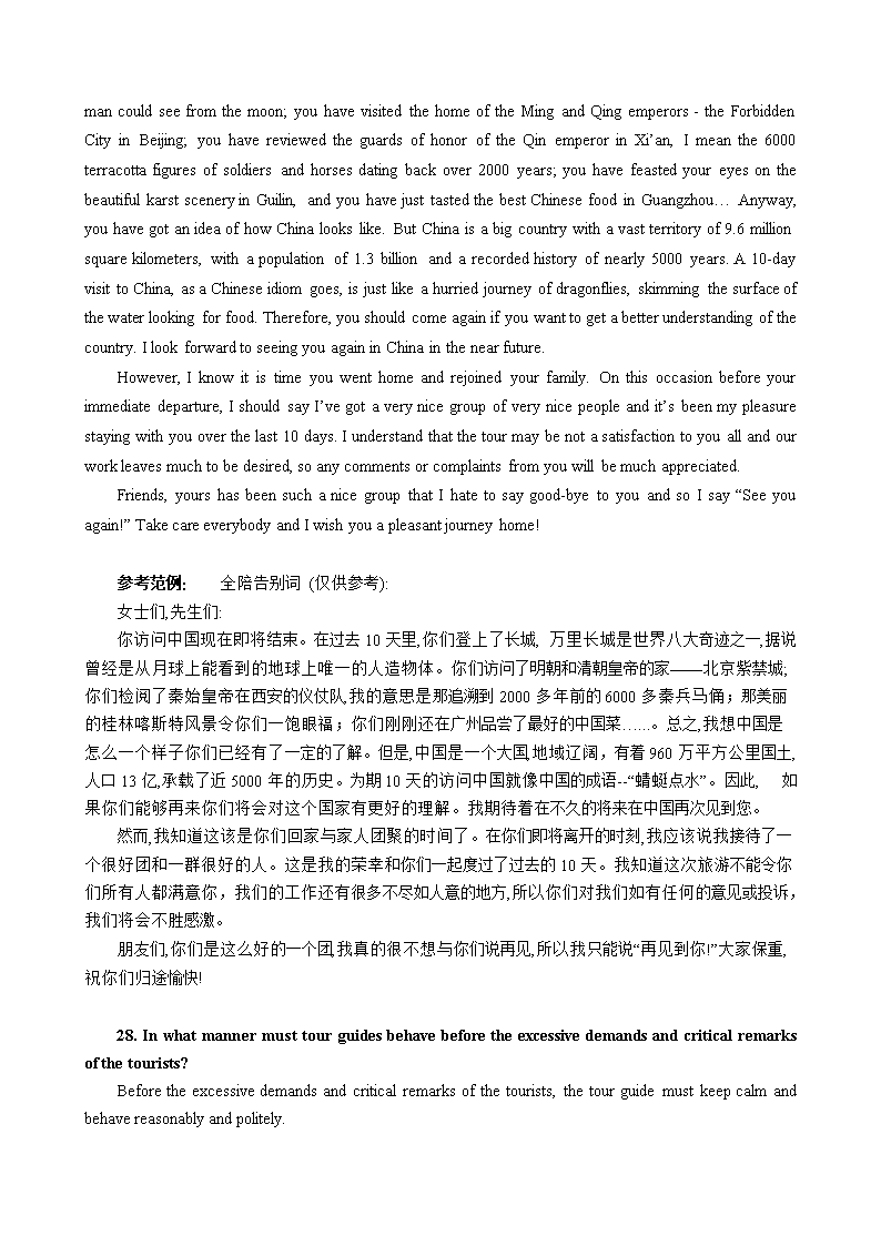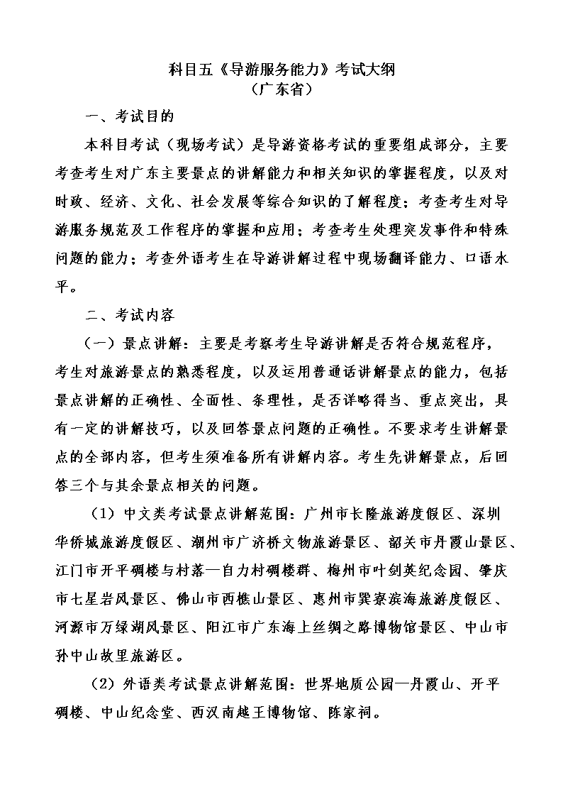 广东省2023年全国导游资格考试现场必读-英语考试大纲