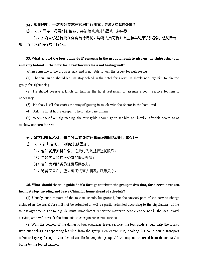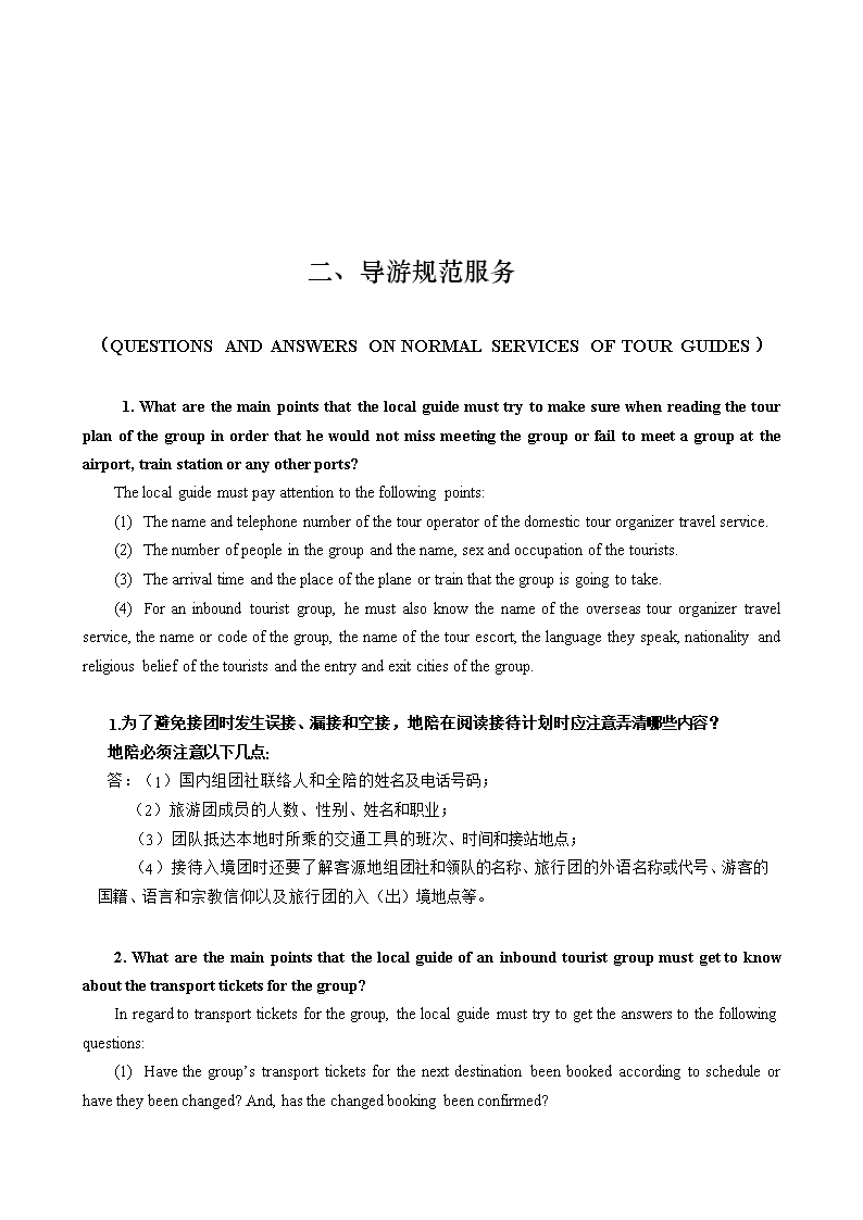 2023年山东导游资格考试导游服务能力考试题库-导游服务规范知识问答及参考答案180道